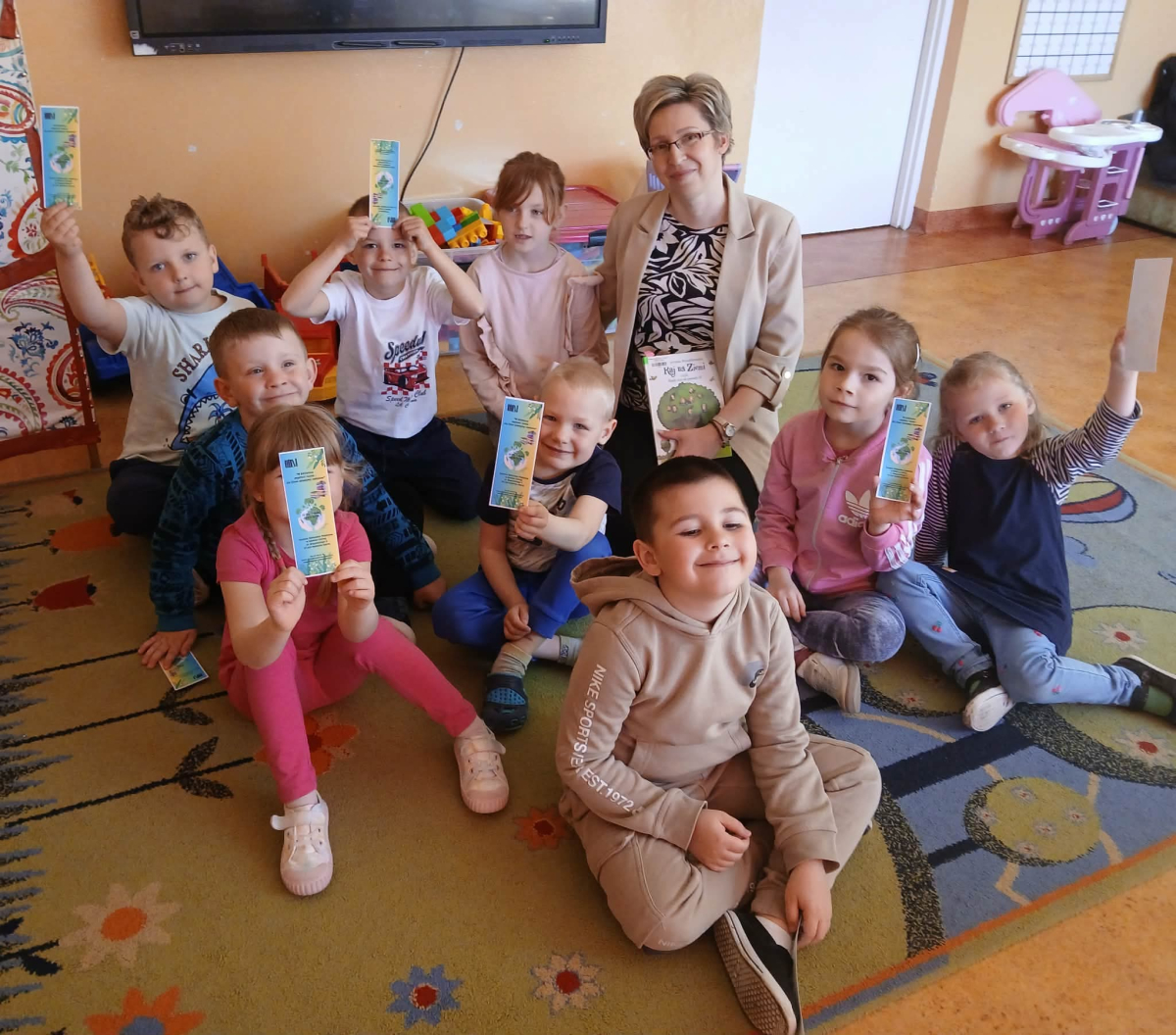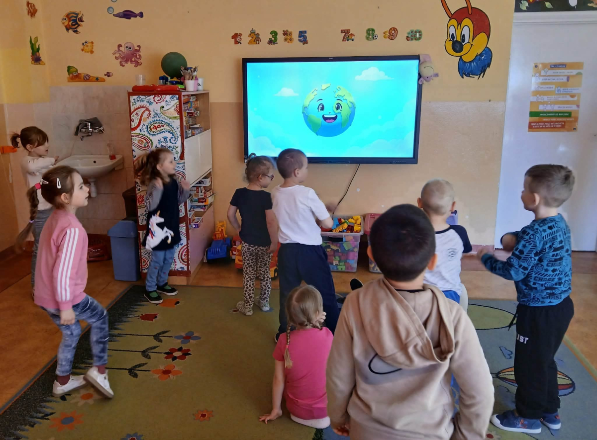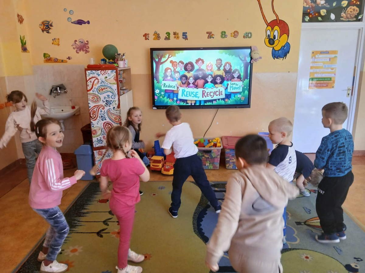 Nie zabrakło też muzycznych akcentów - dzieci wysłuchały ekologicznej piosenki, która zachęciła je do tańca i wspólnej zabawy. Na koniec same również zaprezentowały swoją piosenkę, sprawiając wszystkim wiele radości.