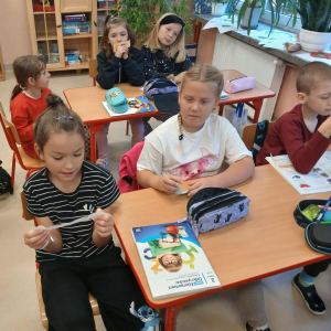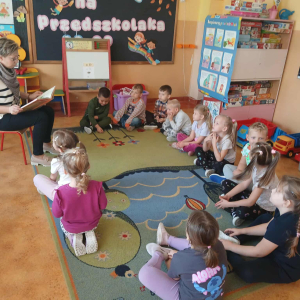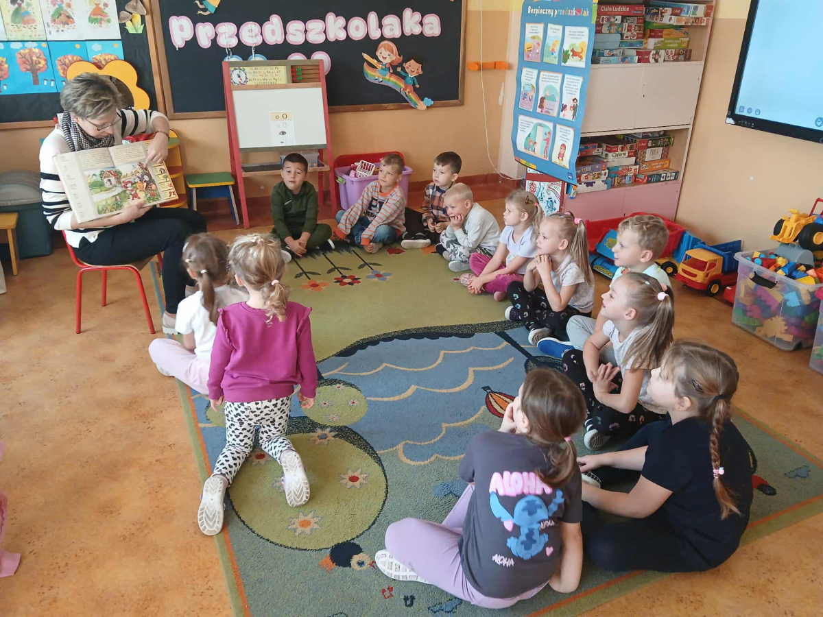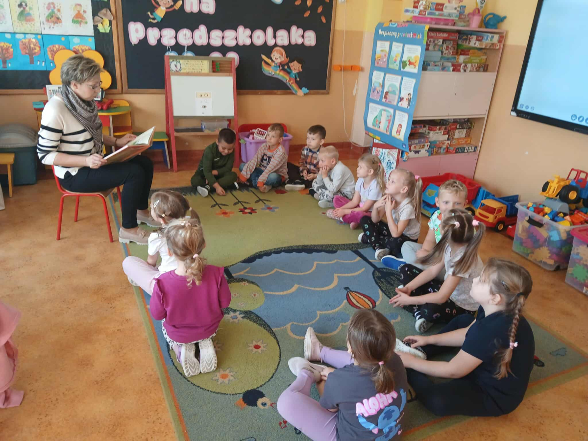Po lekturze odbyła się krótka rozmowa na temat bajki – dzieci chętnie dzieliły się swoimi spostrzeżeniami, mówiły o ulubionych bohaterach i opowiadały, co najbardziej im się podobało.