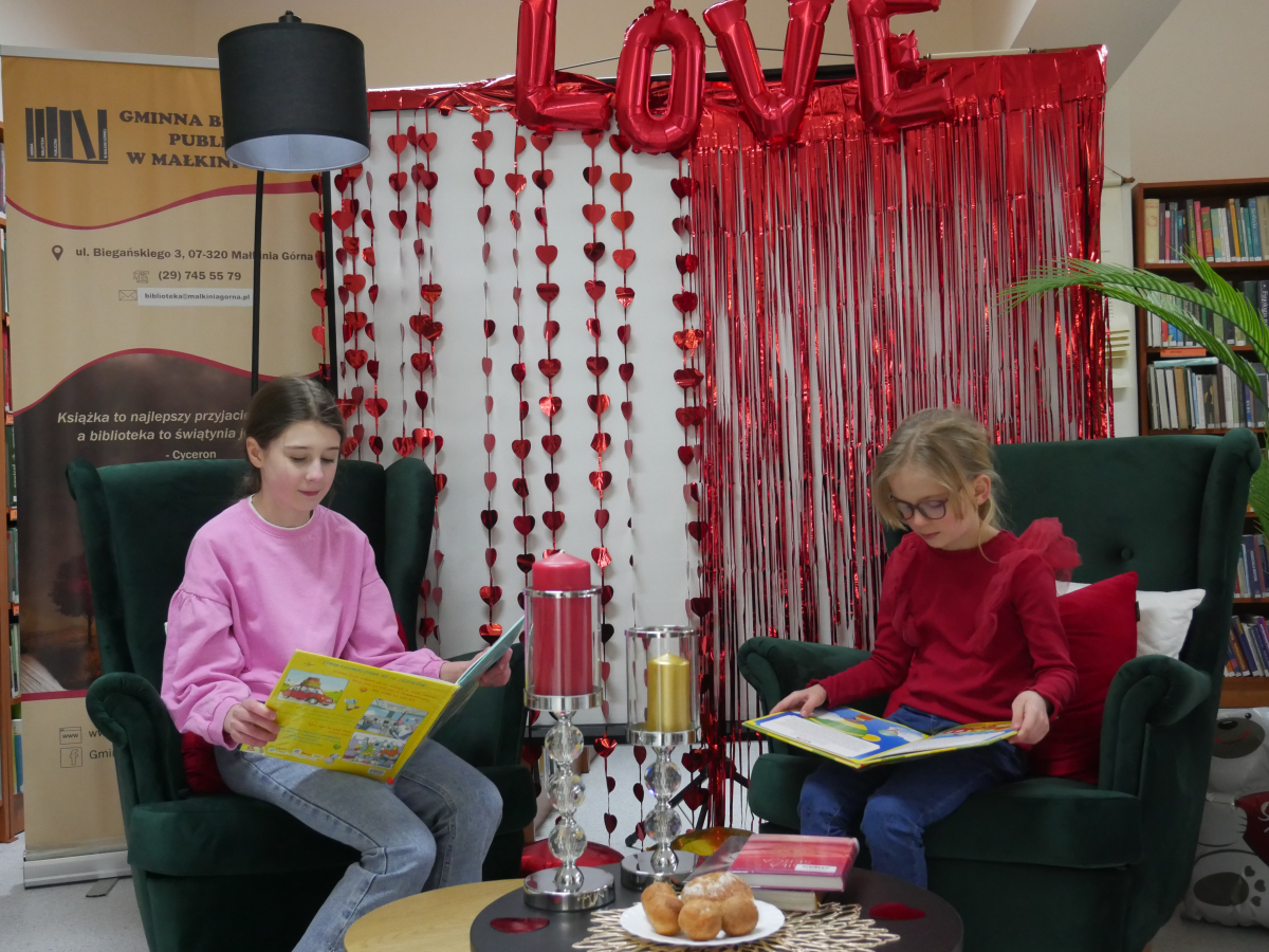 Wasza obecność stworzyła niezwykłą, serdeczną atmosferę. Dziękujemy za rozmowy, za chwile relaksu przy filiżance kawy i herbaty, za udział w walentynkowej sesji zdjęciowej oraz za radość, którą wnieśliście do biblioteki.