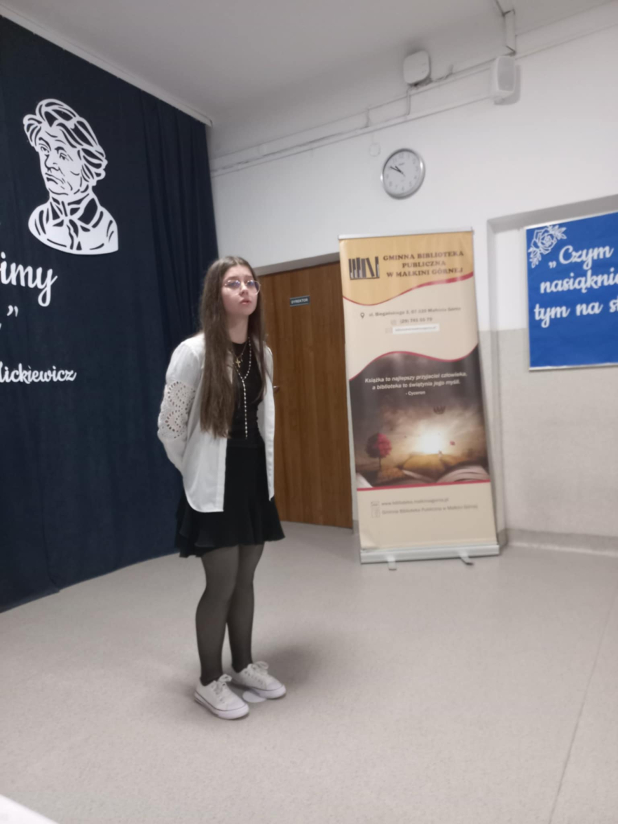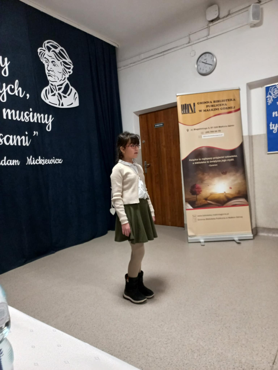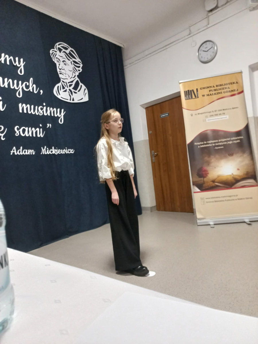 W dalszej części uroczystości swoje słowa skierowała do zebranych pani Grażyna Wujek p.o. Dyrektora Gminnej Biblioteki Publicznej w Małkini Górnej, która pogratulowała wszystkim recytatorom pięknych prezentacji, podziękowała organizatorom za przygotowanie konkursu oraz wyraziła nadzieję na dalszą, owocną współpracę przy kolejnych inicjatywach kulturalnych.