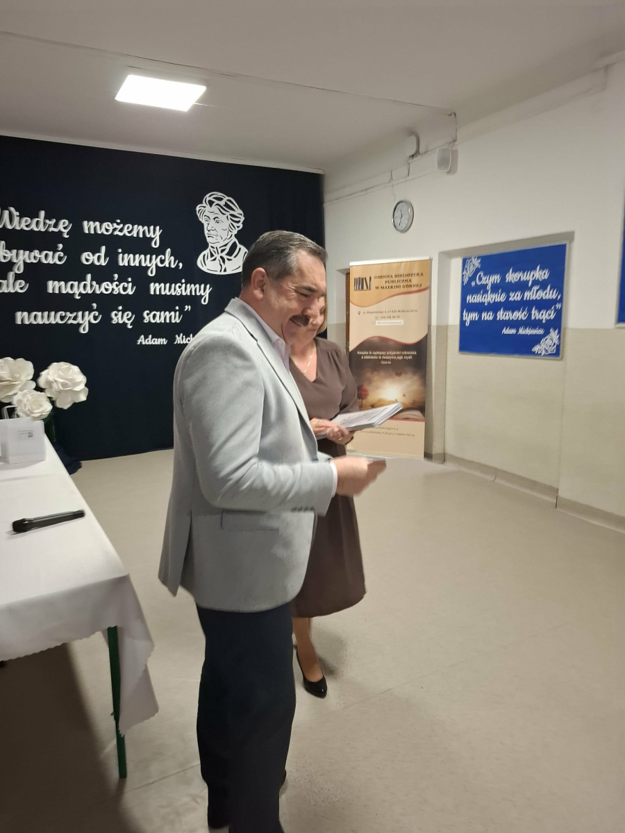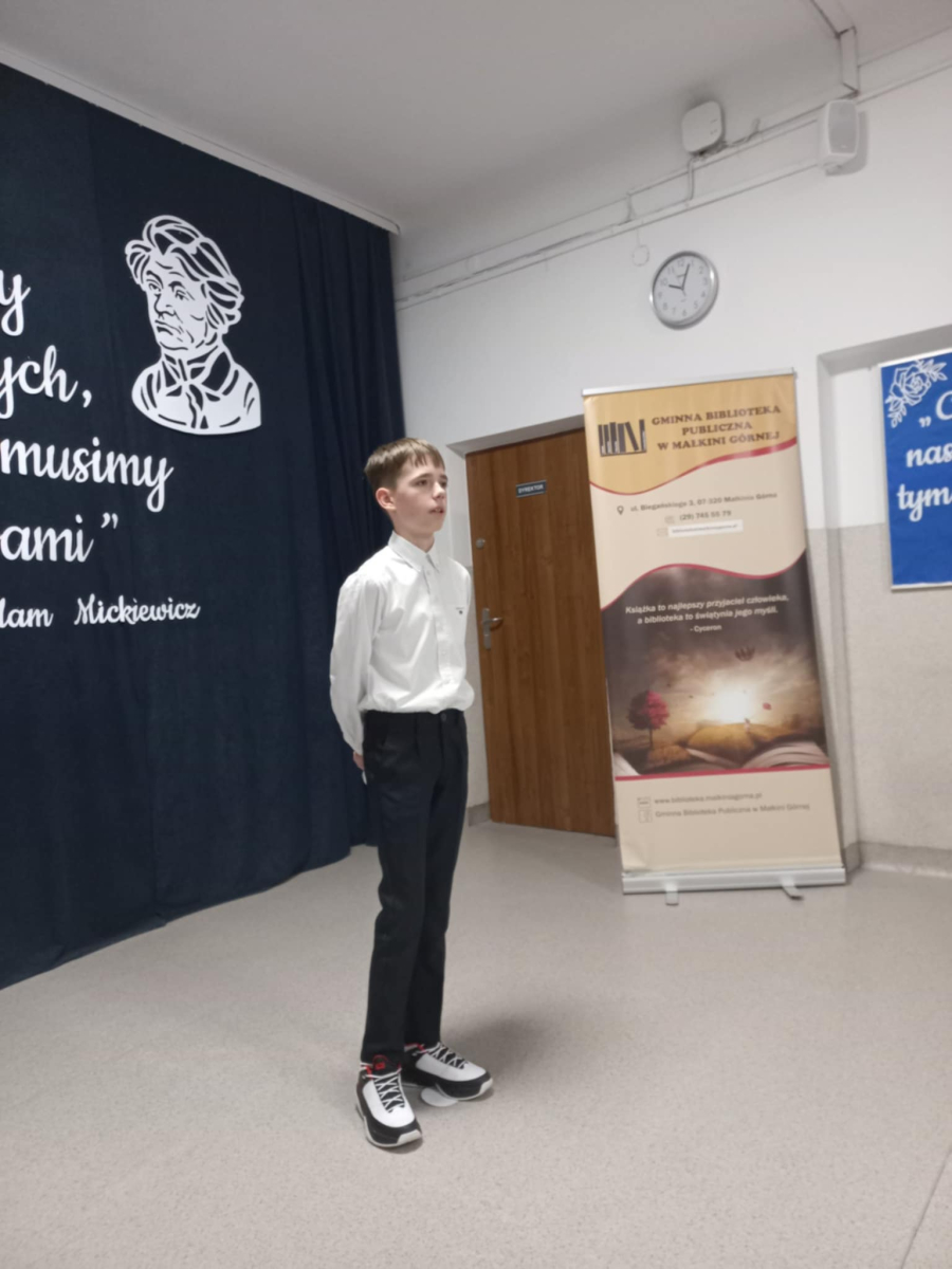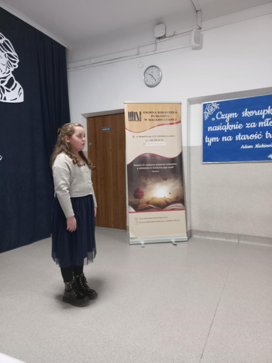W dalszej części uroczystości swoje słowa skierowała do zebranych pani Grażyna Wujek p.o. Dyrektora Gminnej Biblioteki Publicznej w Małkini Górnej, która pogratulowała wszystkim recytatorom pięknych prezentacji, podziękowała organizatorom za przygotowanie konkursu oraz wyraziła nadzieję na dalszą, owocną współpracę przy kolejnych inicjatywach kulturalnych.