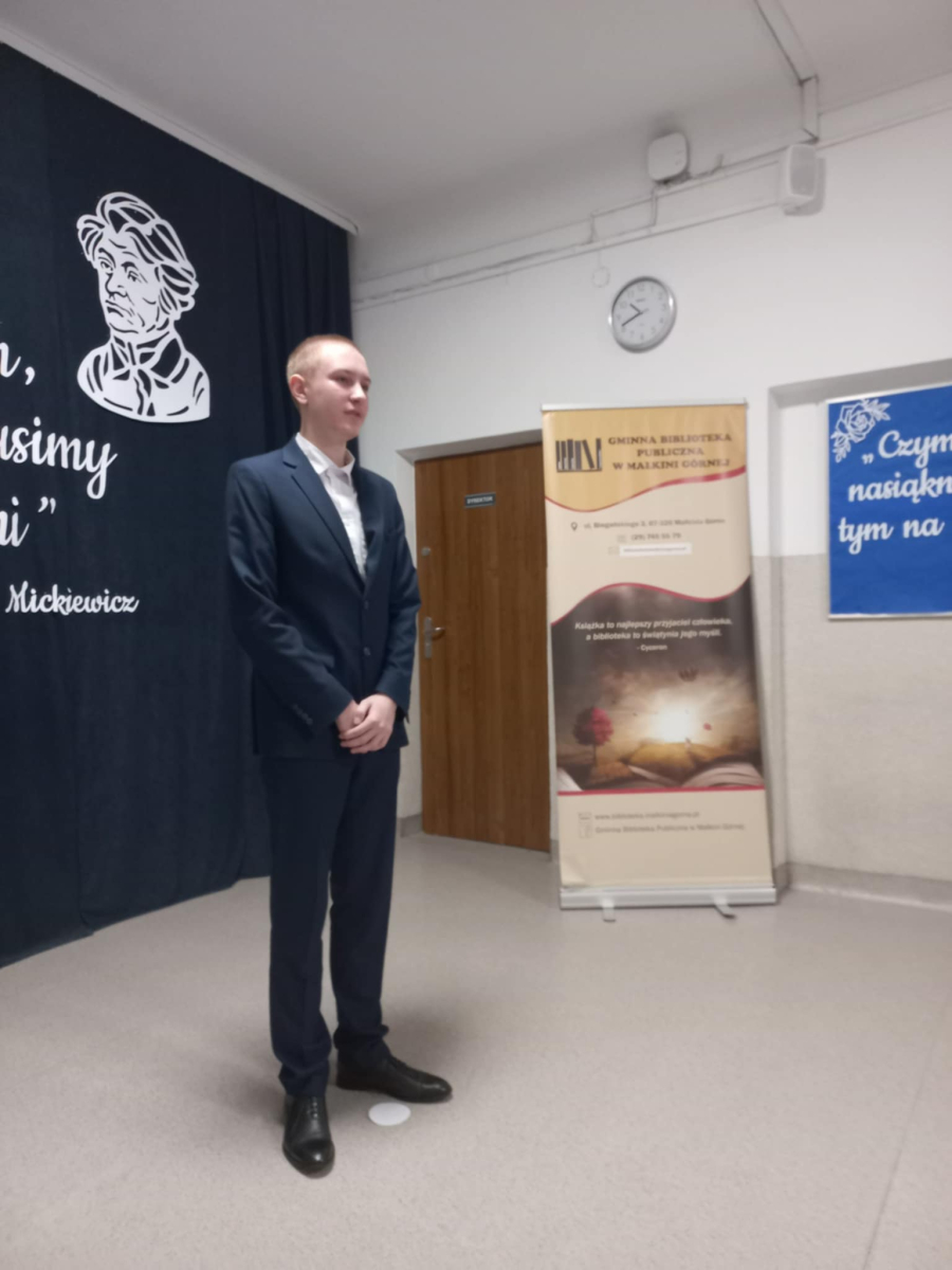Następnie wystąpił Wójt Gminy Małkinia Górna pan Dariusz Rafalik, który pogratulował uczestnikom oraz życzył im dalszych sukcesów w rozwijaniu talentów recytatorskich.