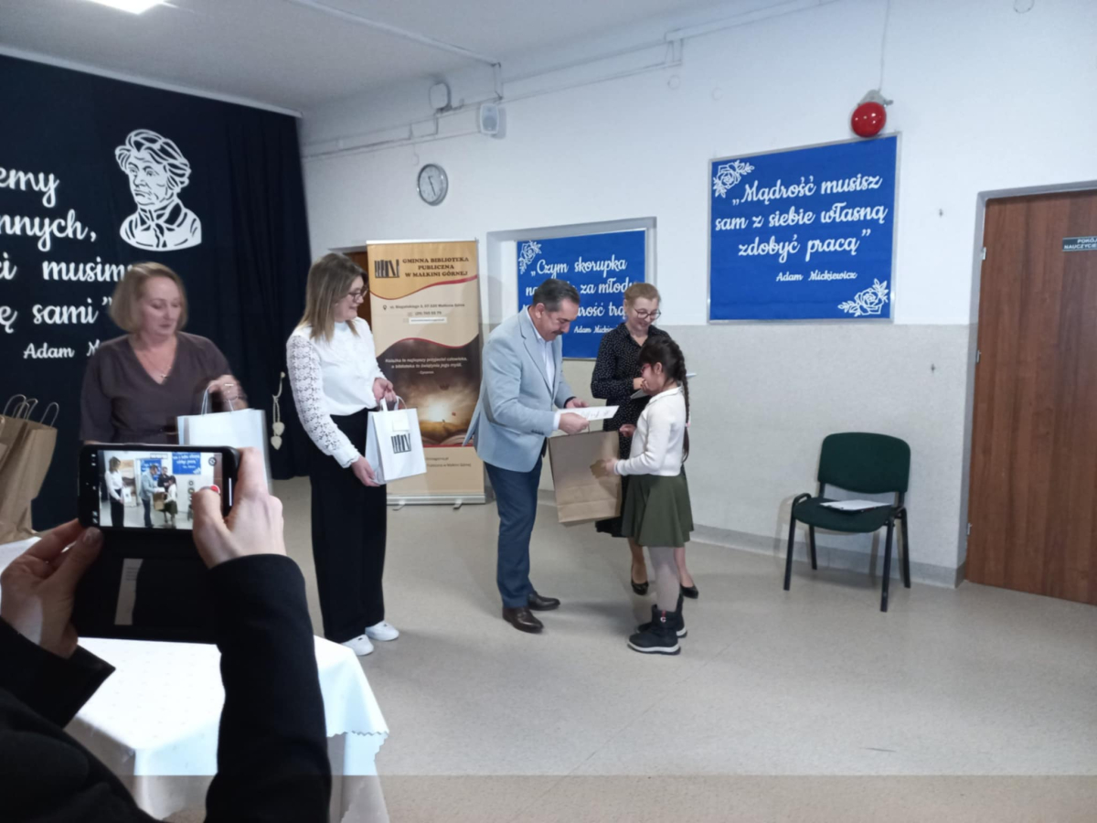 Zwycięzcy otrzymali nagrody ufundowane przez Pana Wójta Gminy, Gminną Bibliotekę Publiczną w Małkini Górnej oraz Szkołę Podstawową w Orle.