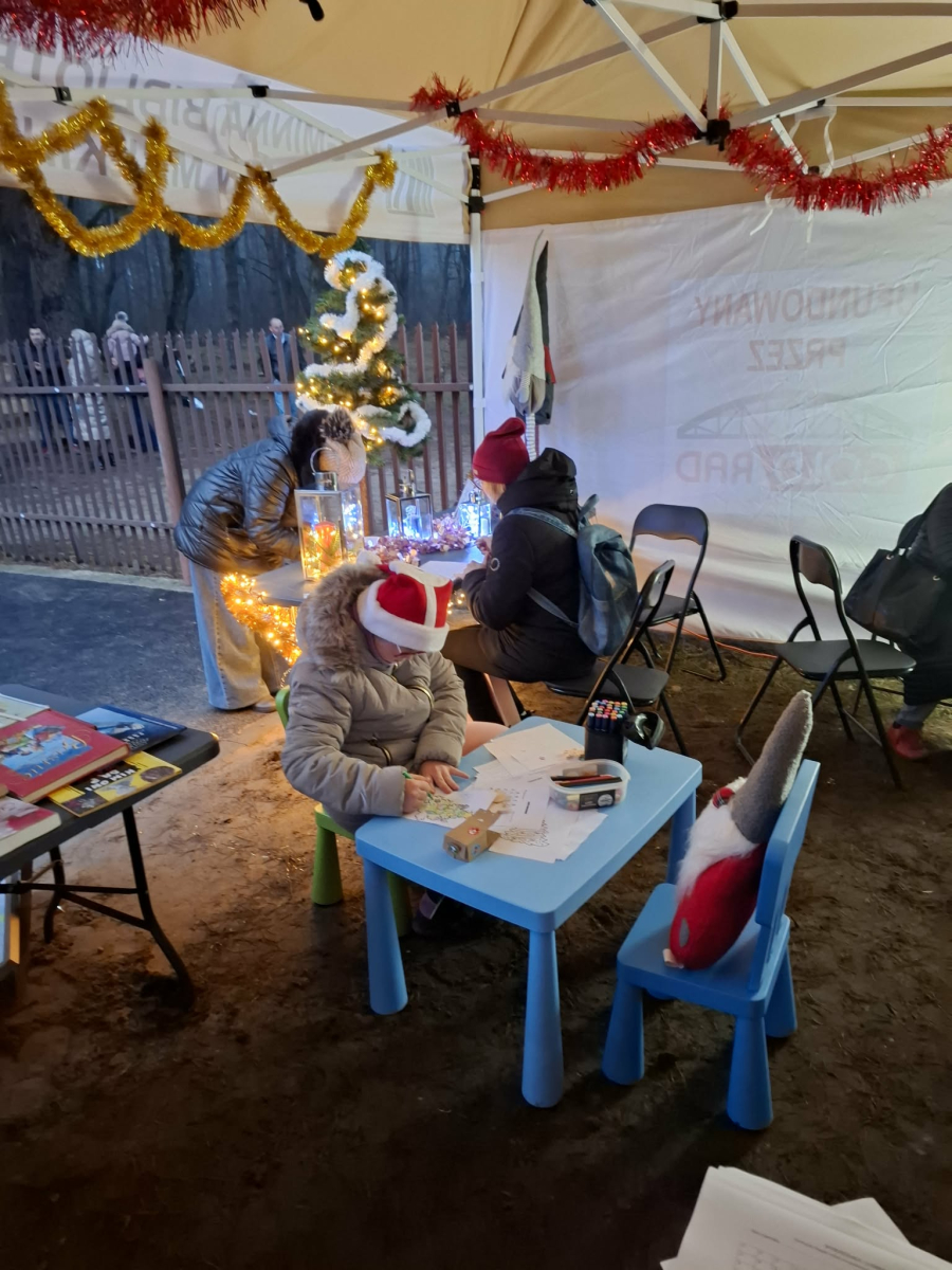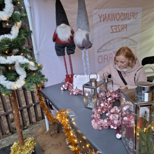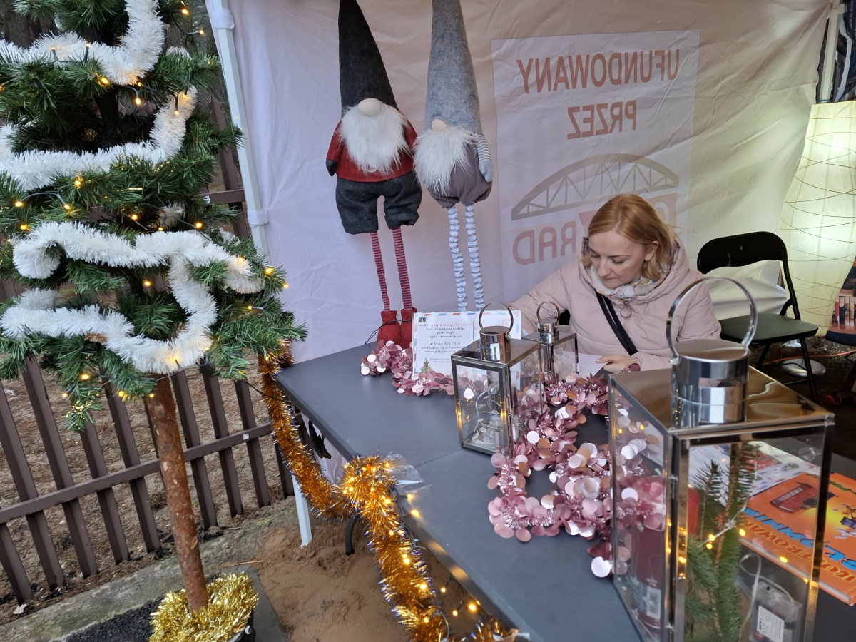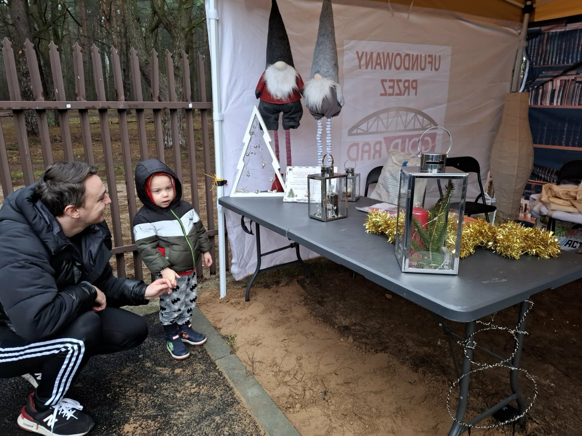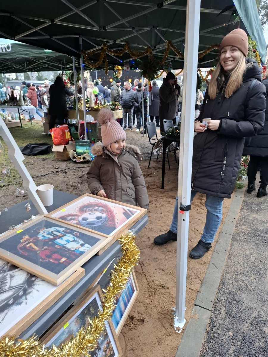 Na naszym stoisku promocyjnym swoje prace prezentował także młody uczestnik Jarmarku, co dodatkowo wzbogaciło świąteczny klimat i przyciągało wzrok odwiedzających.