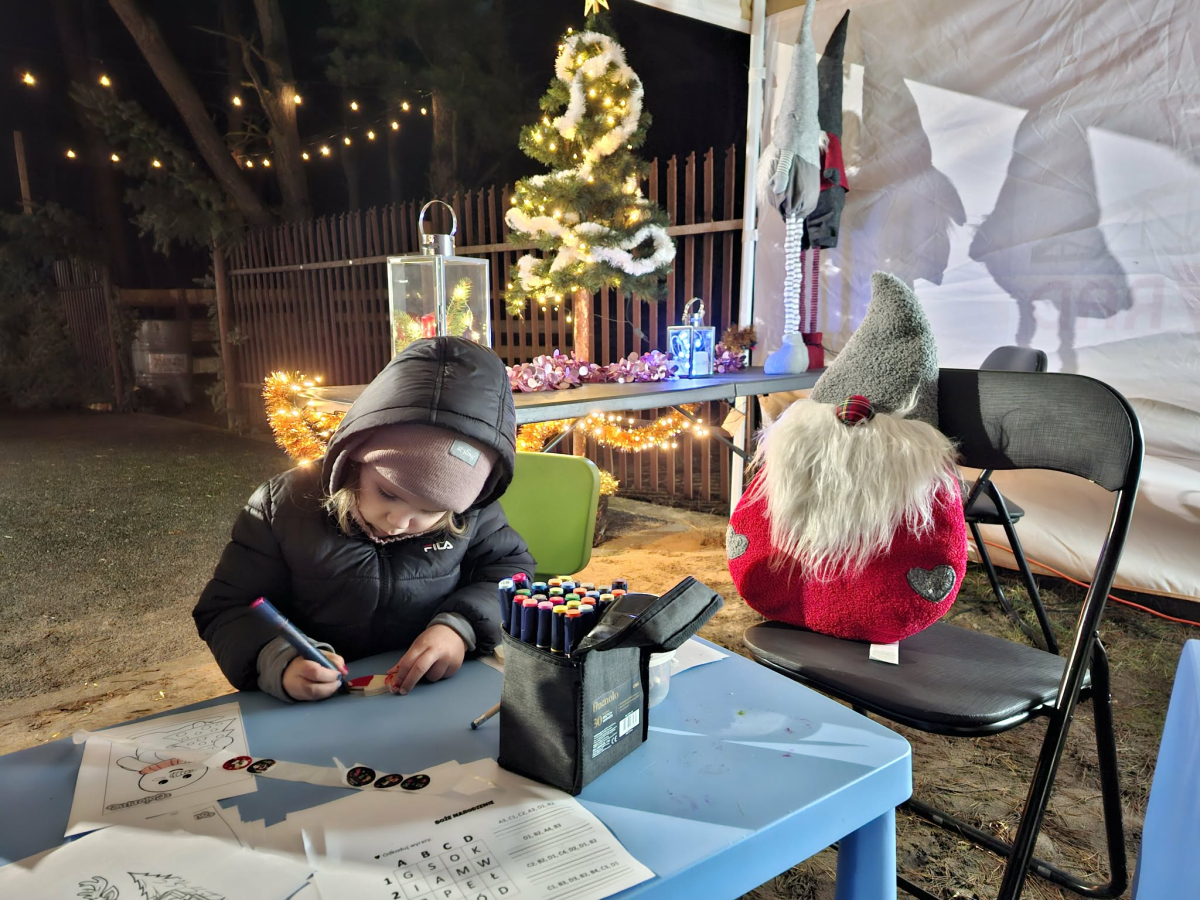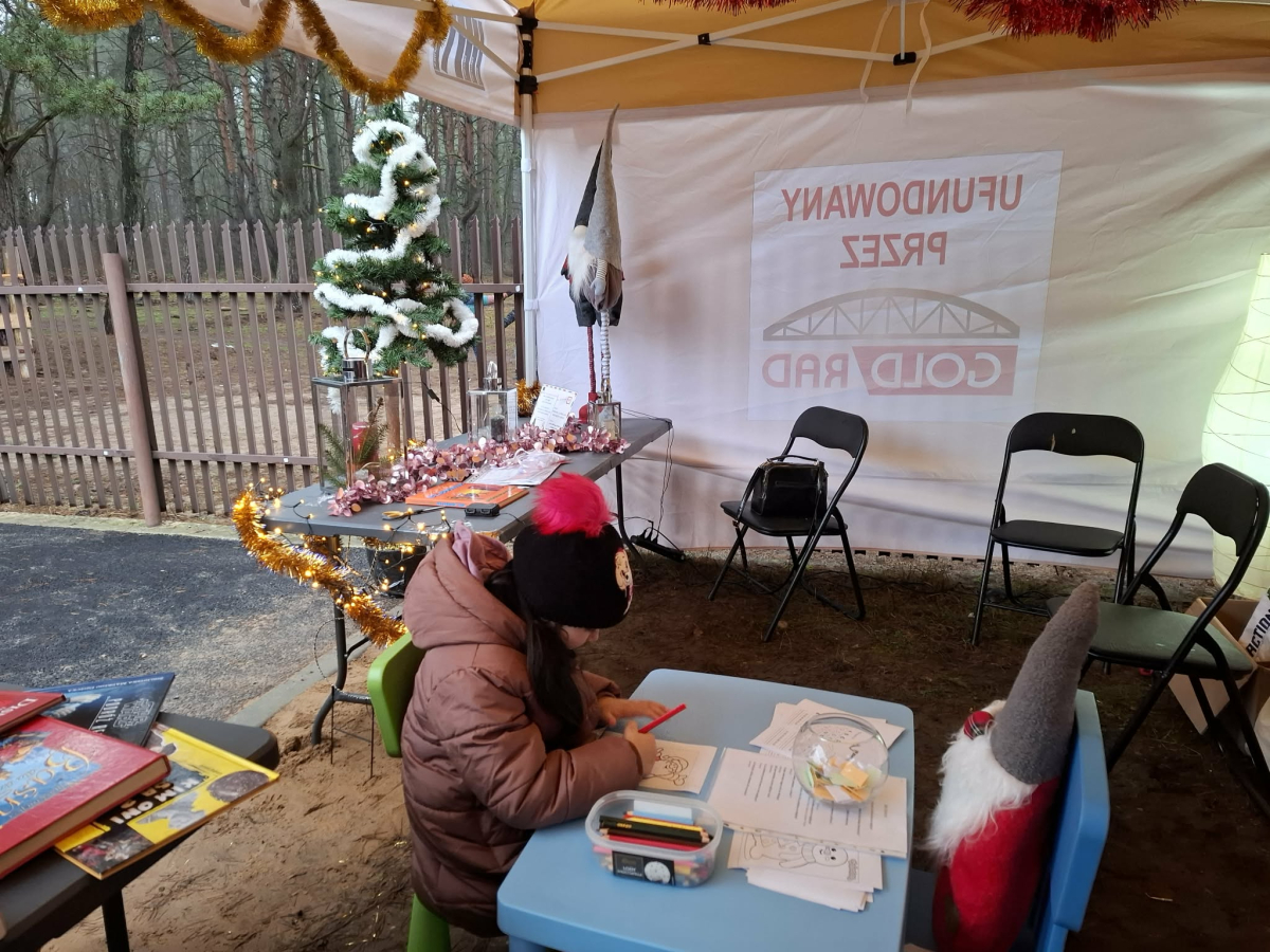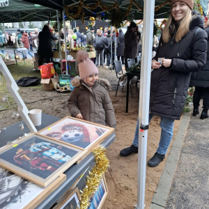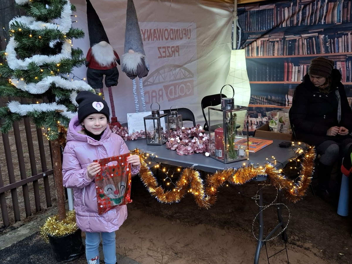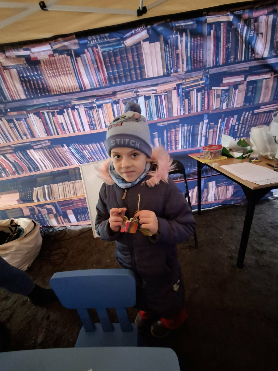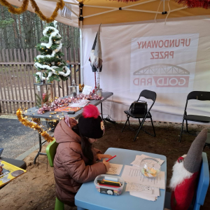 Na naszym stoisku promocyjnym swoje prace prezentował także młody uczestnik Jarmarku, co dodatkowo wzbogaciło świąteczny klimat i przyciągało wzrok odwiedzających.