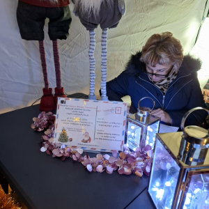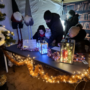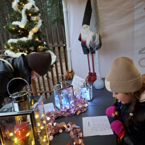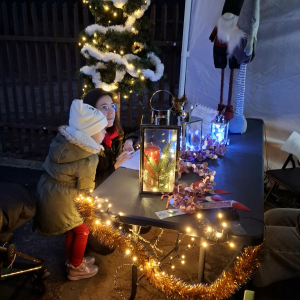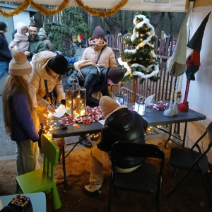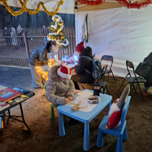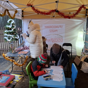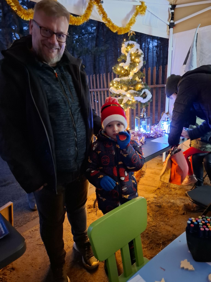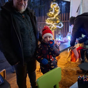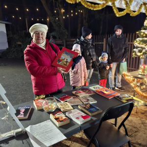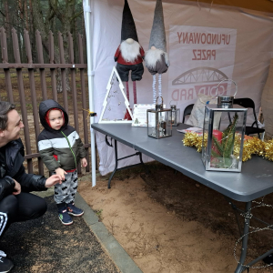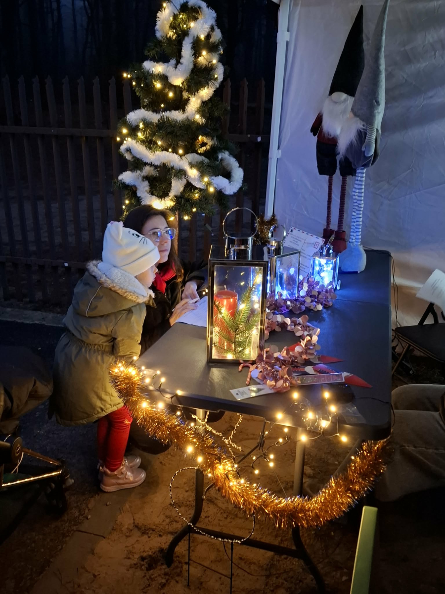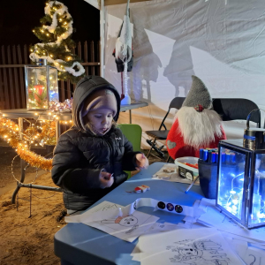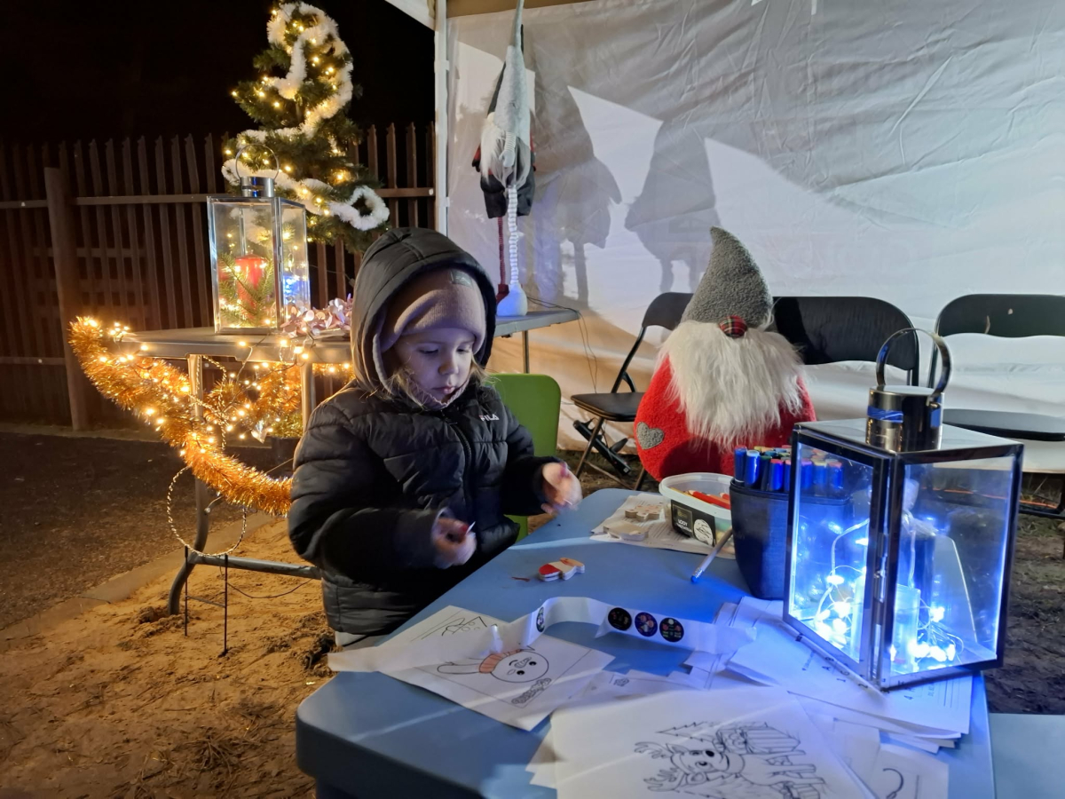 Na naszym stoisku promocyjnym swoje prace prezentował także młody uczestnik Jarmarku, co dodatkowo wzbogaciło świąteczny klimat i przyciągało wzrok odwiedzających.