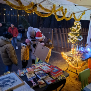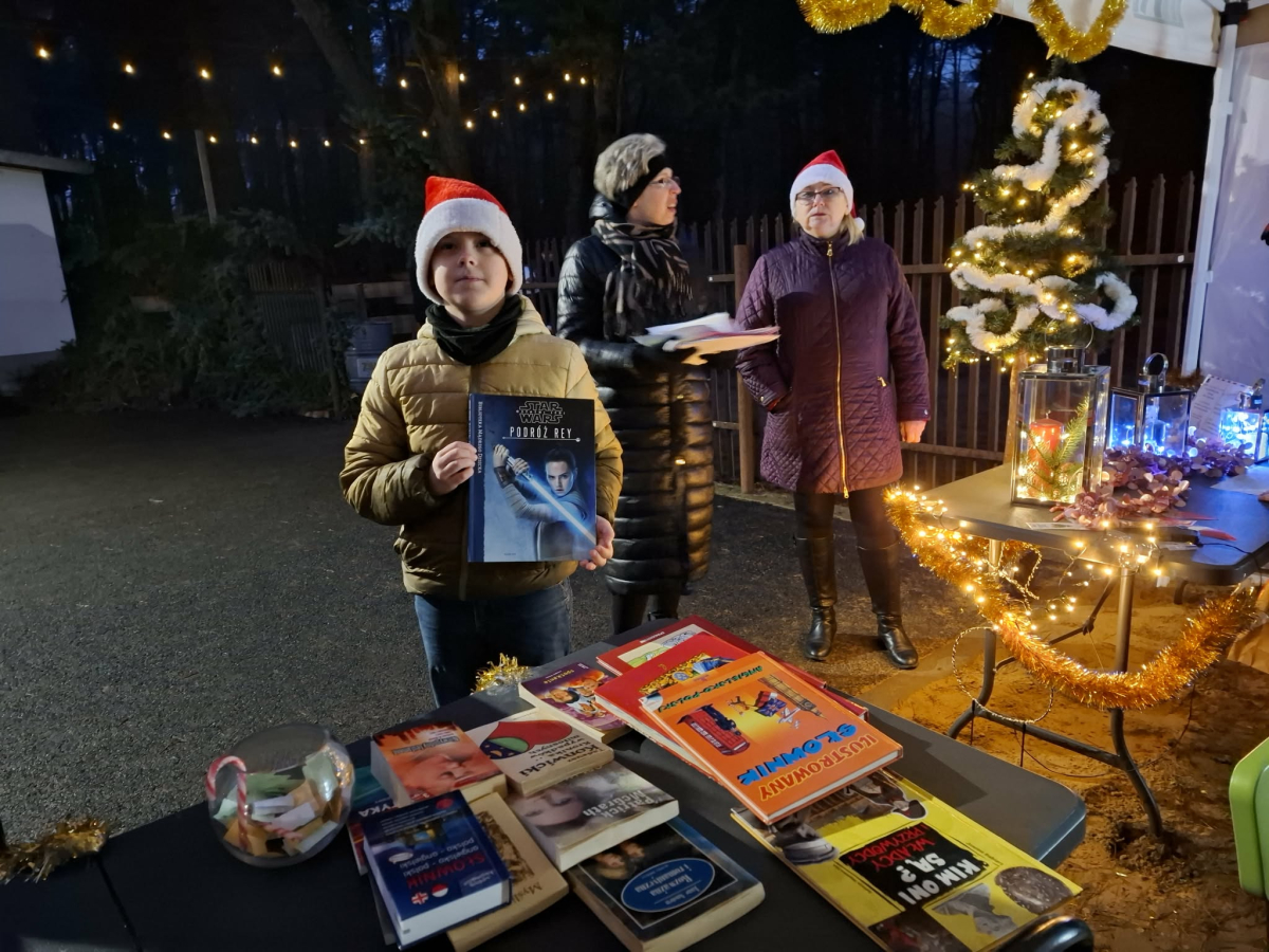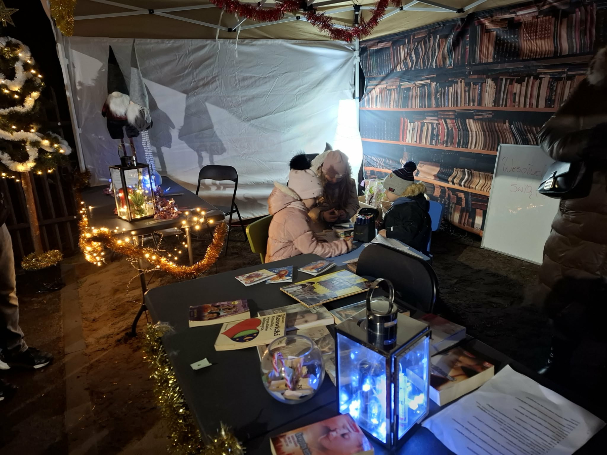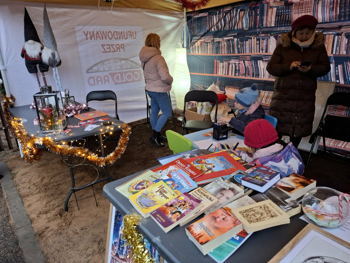 Wśród świątecznych stoisk było także Stoisko naszej biblioteki, które wyróżniało się bajkowo-książkowym wystrojem i wyjątkową, magiczną atmosferą.