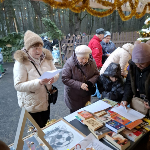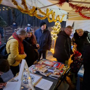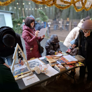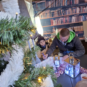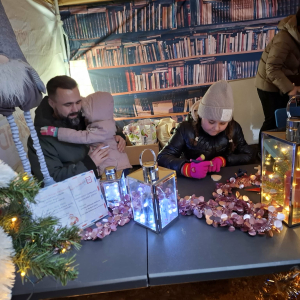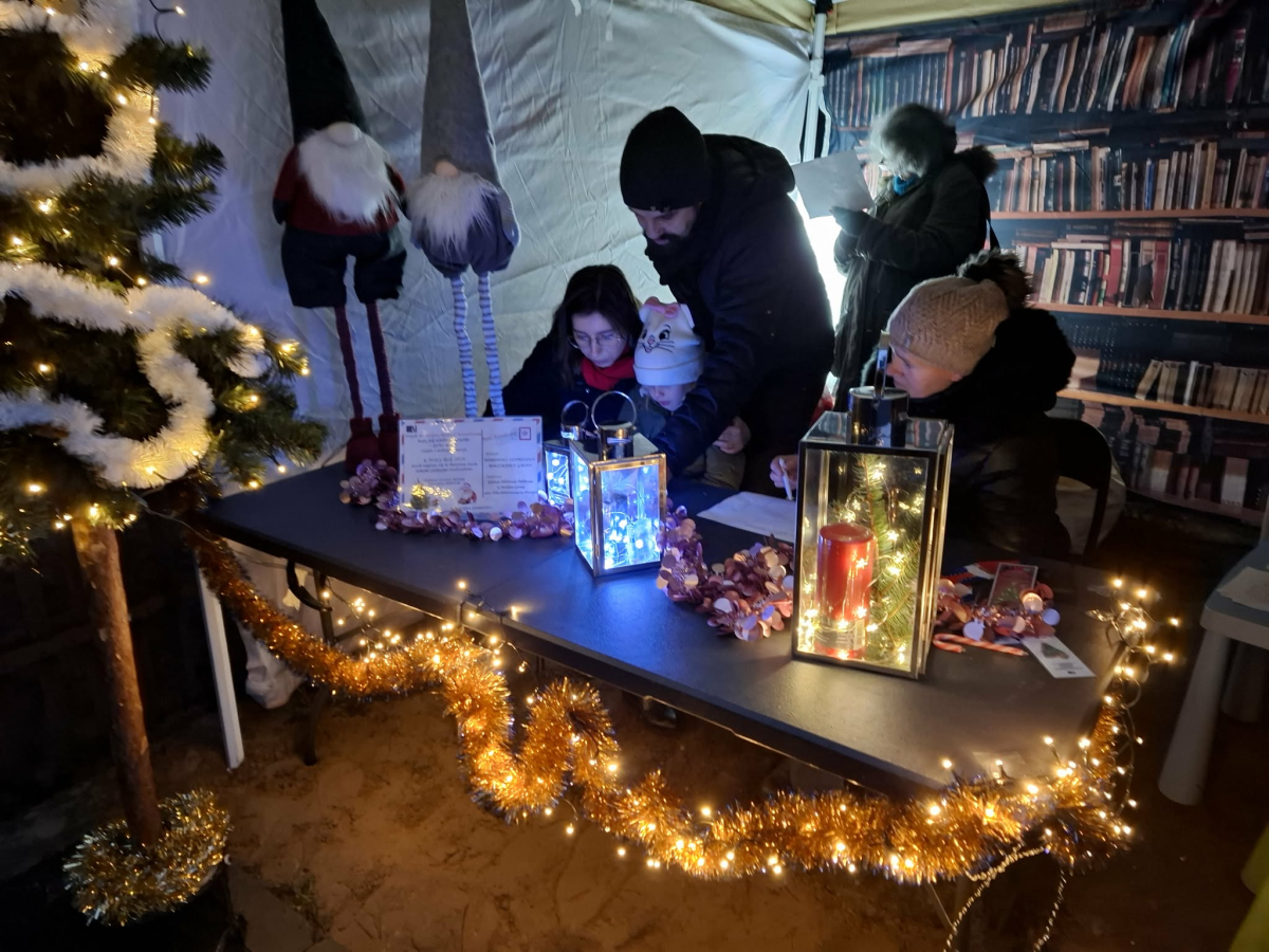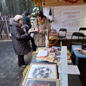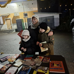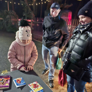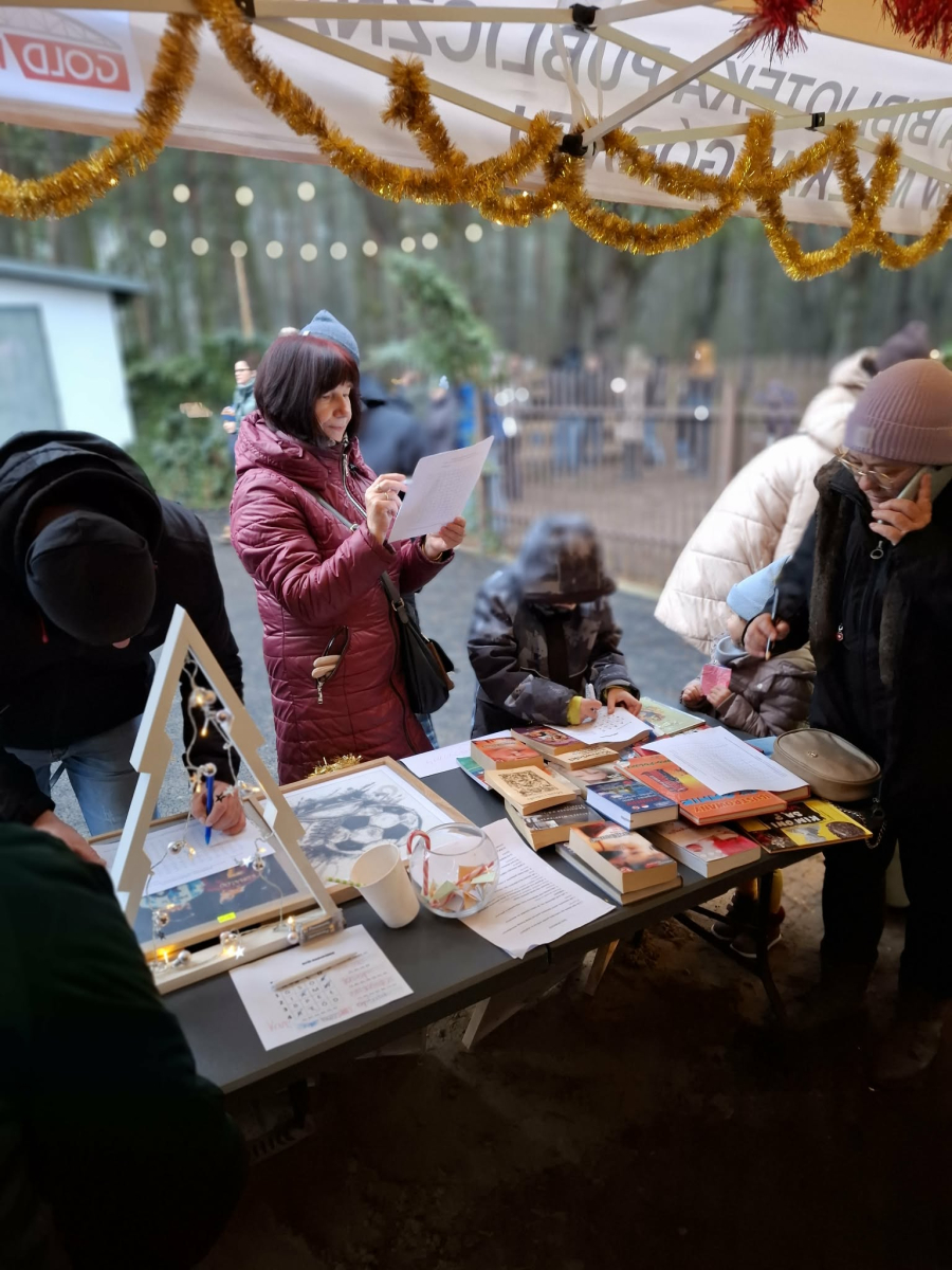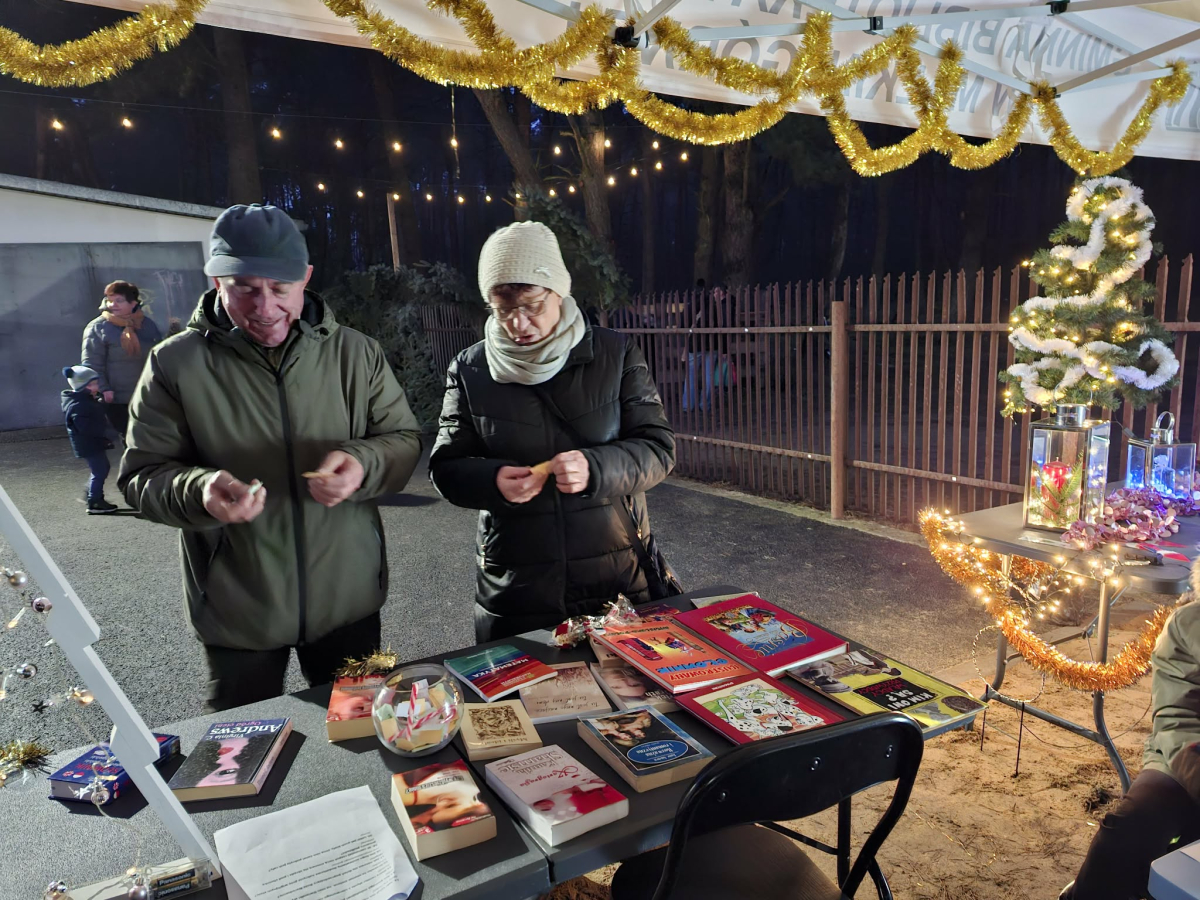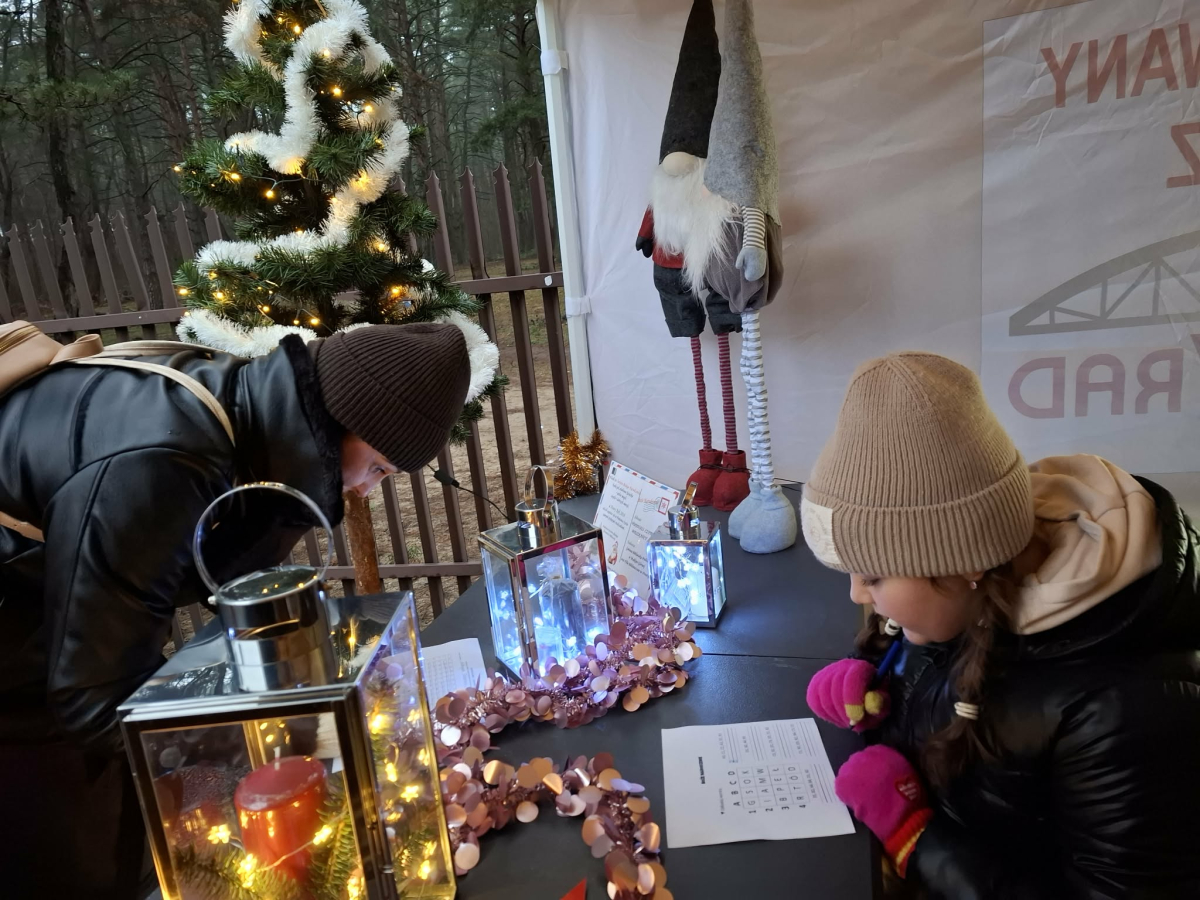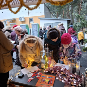 W czasie trwania Jarmarku biblioteka przeprowadziła różnorodne atrakcje i zabawy edukacyjne. Były zagadki, rebusy, losowanie pytań, kolorowanki, a także ozdabianie bombek ze sklejki, które można było zabrać ze sobą do domu - wszystkie te działania cieszyły się ogromnym zainteresowaniem. Za poprawne wykonanie zadań uczestnicy otrzymywali słodki upominek lub mogli wybrać książkę, co sprawiało wiele radości zarówno najmłodszym, jak i dorosłym.