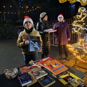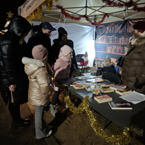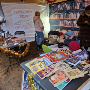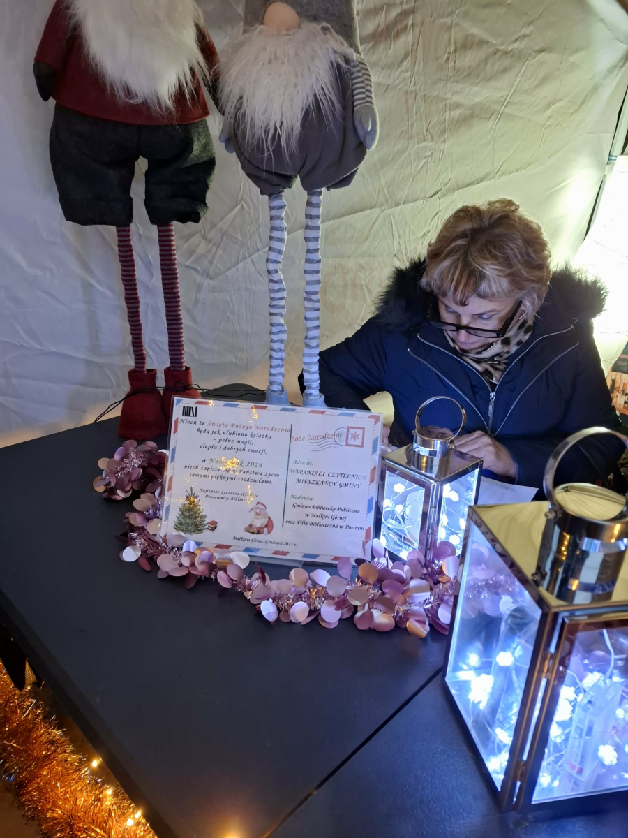 Wydawane były również Upominki Uczestnikom Akcji „Codzienność z Biblioteką = Magiczne chwile”, co dodatkowo podkreśliło wyjątkowy, świąteczny i biblioteczny charakter jarmarku.