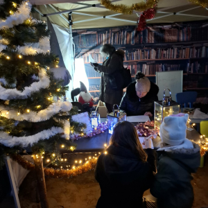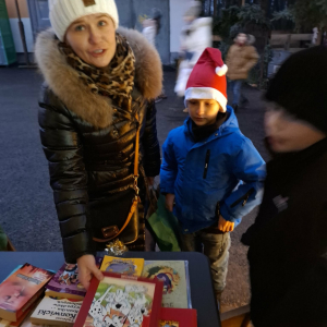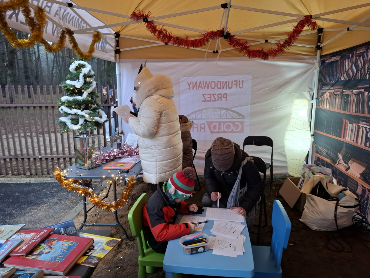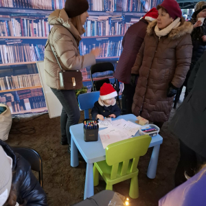 Kolorowe światełka, ozdobiona choinka, mikołajowe skrzaty, świąteczne dekoracje oraz „ścianka” i prezentacja książek przyciągały uwagę zarówno dzieci, jak i dorosłych.