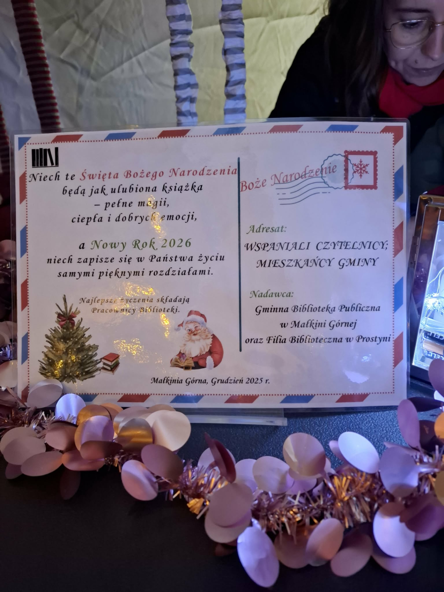 20 grudnia 2025 r. na placu przy GOKiS w Małkini Górnej odbył się wyjątkowy Jarmark Świąteczny, który zgromadził wielu mieszkańców chcących poczuć magię zbliżających się Świąt Bożego Narodzenia.