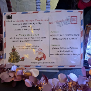Dodatkowo biblioteka przeprowadziła konkurs dla dorosłych pt. „WYKREŚLANKA- JARMARK ŚWIĄTECZNY”, którego Organizatorem i Fundatorem Nagród był Urząd Gminy Małkinia Górna.