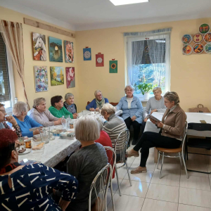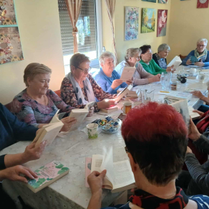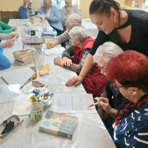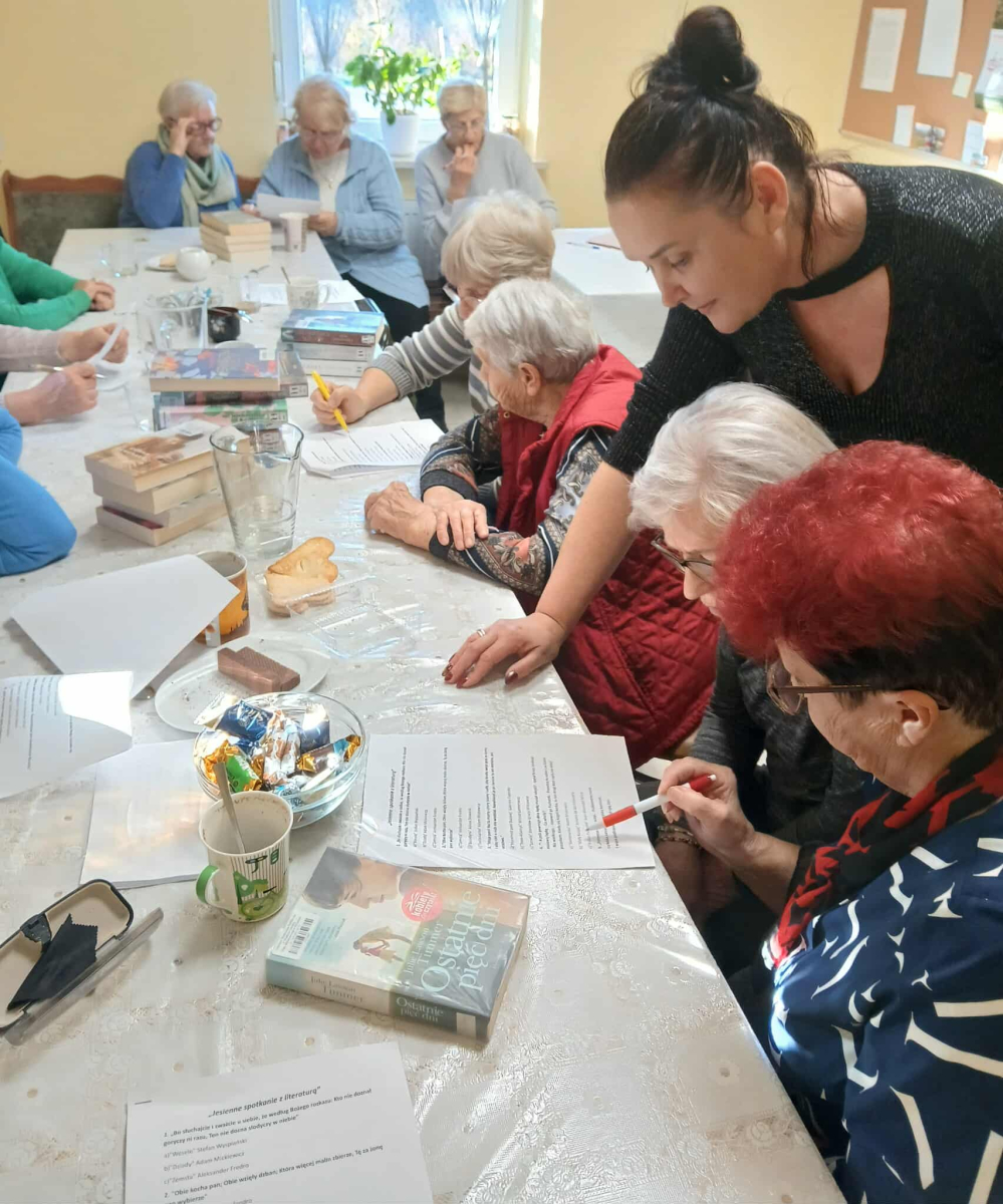 W poniedziałkowe popołudnie 20 października pani bibliotekarka z Filii Bibliotecznej w Prostyni odwiedziła prostyński Klub Senior + W ramach „Jesiennego spotkania z literaturą” p. Iza przeczytała fragment z książki „Jesienna miłość” autorstwa Nicholasa Sparksa, co pozwoliło uczestnikom zanurzyć się w świat literatury i podzielić się swoimi wrażeniami i przemyśleniami. Książka tak zaciekawiła obecnych, że od razu została wypożyczona.