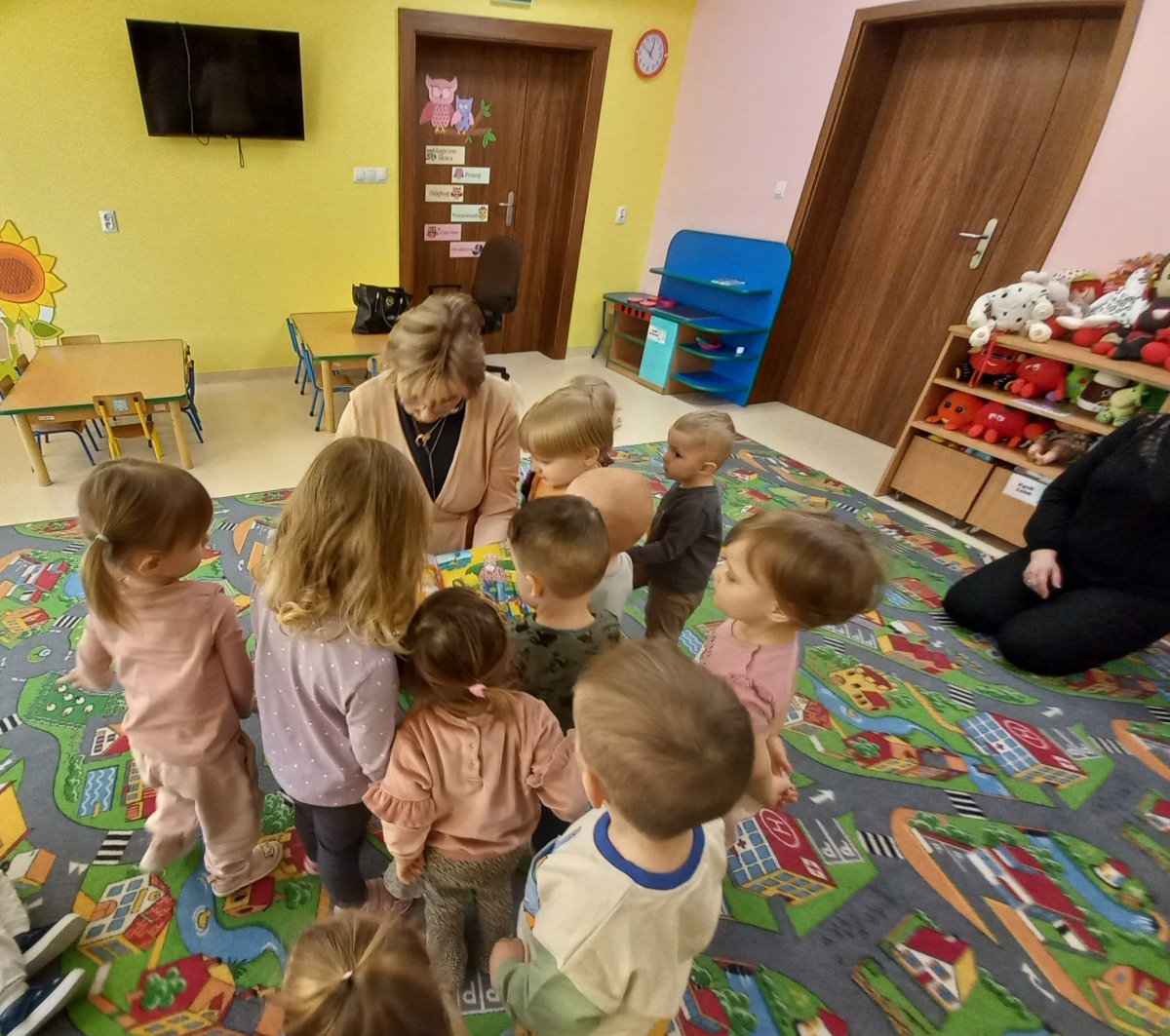 Spotkanie przebiegło w bardzo miłej, przyjaznej atmosferze. Dzieci z ogromnym zainteresowaniem słuchały opowieści, reagując spontanicznie i z uśmiechem na twarzach. Takie chwile pokazują, jak ważny jest kontakt z książką już od najmłodszych lat - rozwija wyobraźnię, wzbogaca słownictwo i buduje pozytywne skojarzenia z czytaniem.