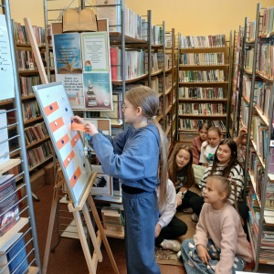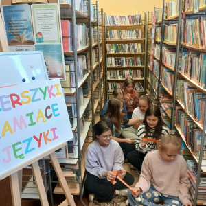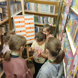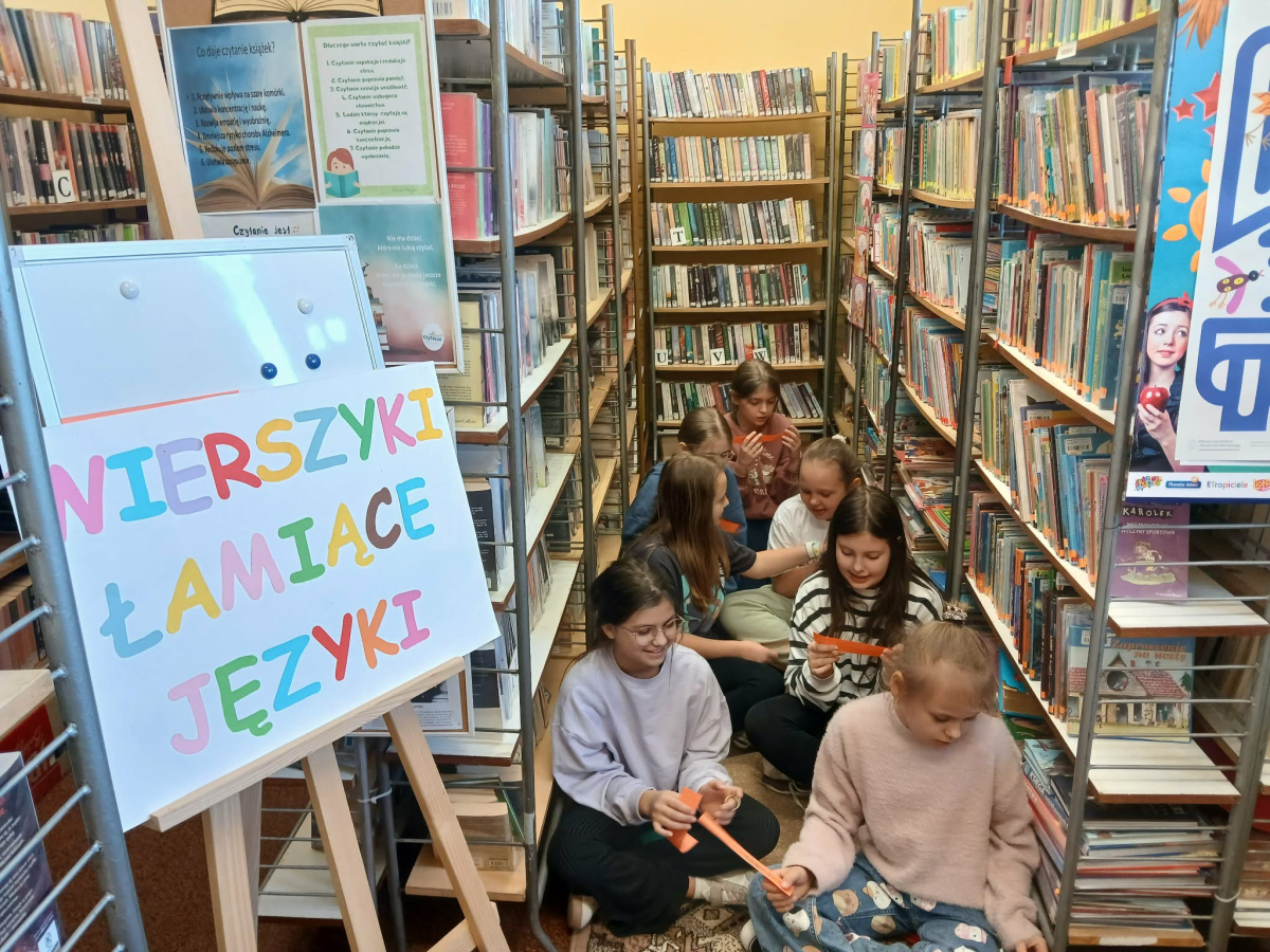 Dzieci najpierw wysłuchały trudnych polskich wierszyków czytanych przez panie bibliotekarki, a następnie same podjęły próbę ich czytania . Kolejną atrakcją było odkrywanie łamańców językowych i zagadek z tablicy i wspólne ich czytanie i odgadywanie. Śmiechu było co niemiara, a dobra zabawa połączona z nauką na długo pozostanie w pamięci uczestników.