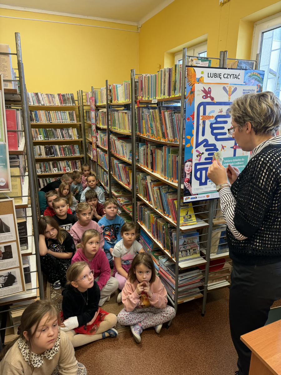 Pani Iza opowiedziała również o projekcie "Mała książka-wielki człowiek", który zachęca najmłodszych do regularnego czytania i odwiedzania biblioteki.