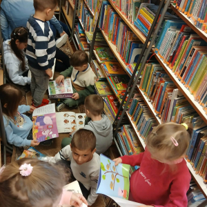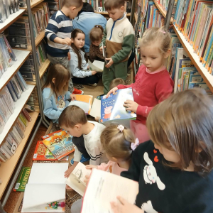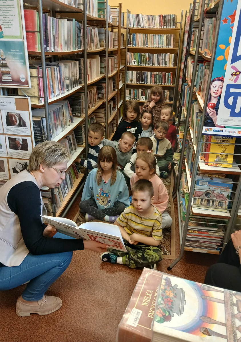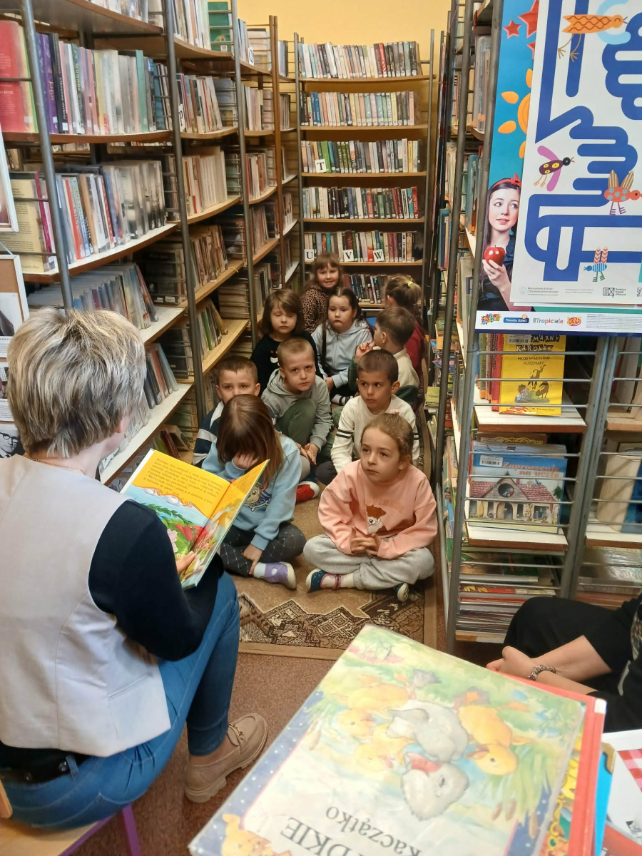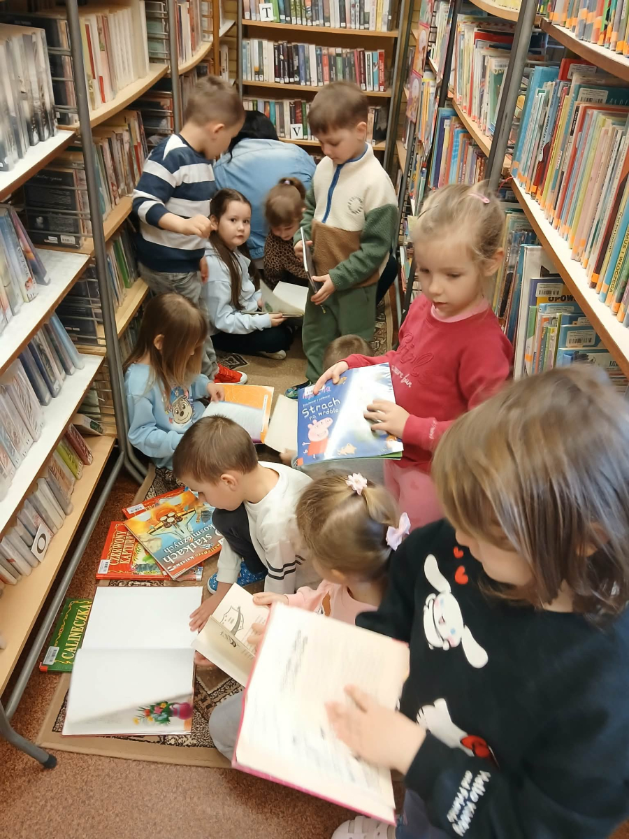 Dzieci poznały zasady korzystania z biblioteki oraz dowiedziały się jak różnorodne książki kryją się na jej półkach – od kolorowych bajek i opowiadań po pełne wiedzy o świecie encyklopedie i słowniki.