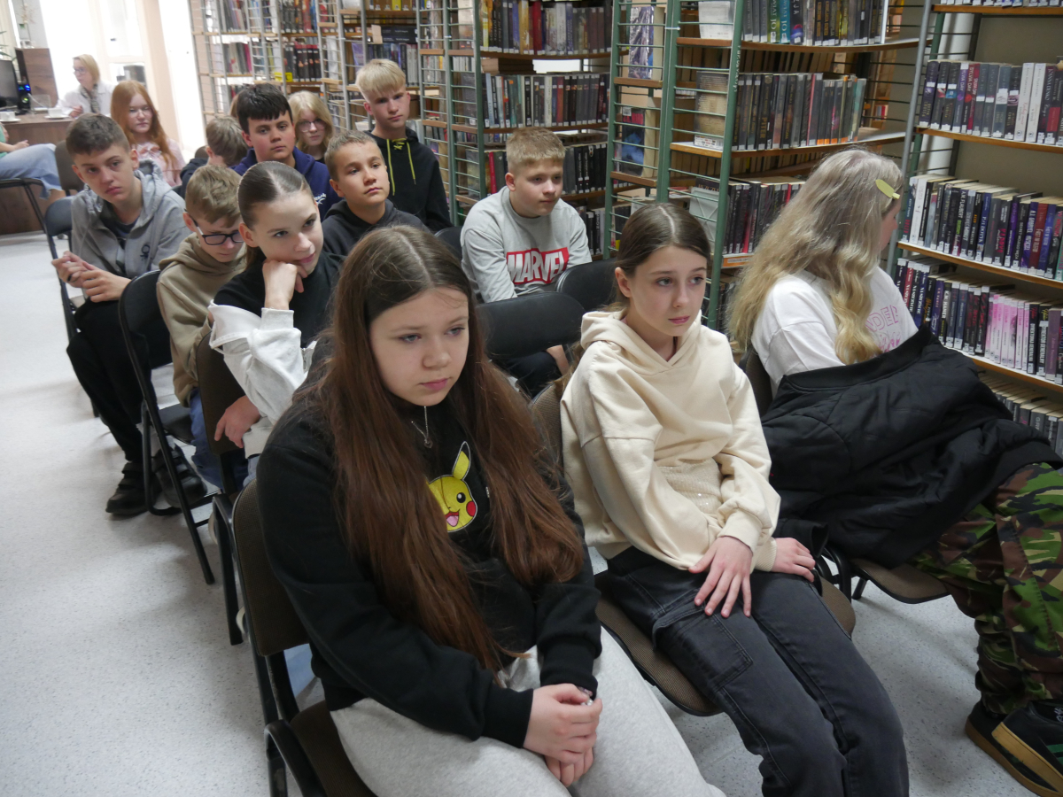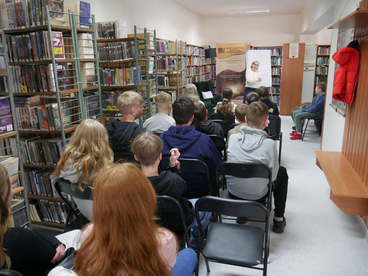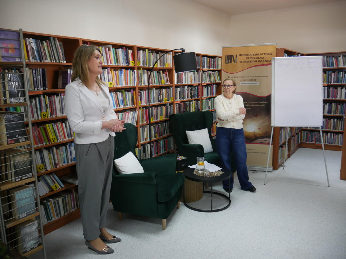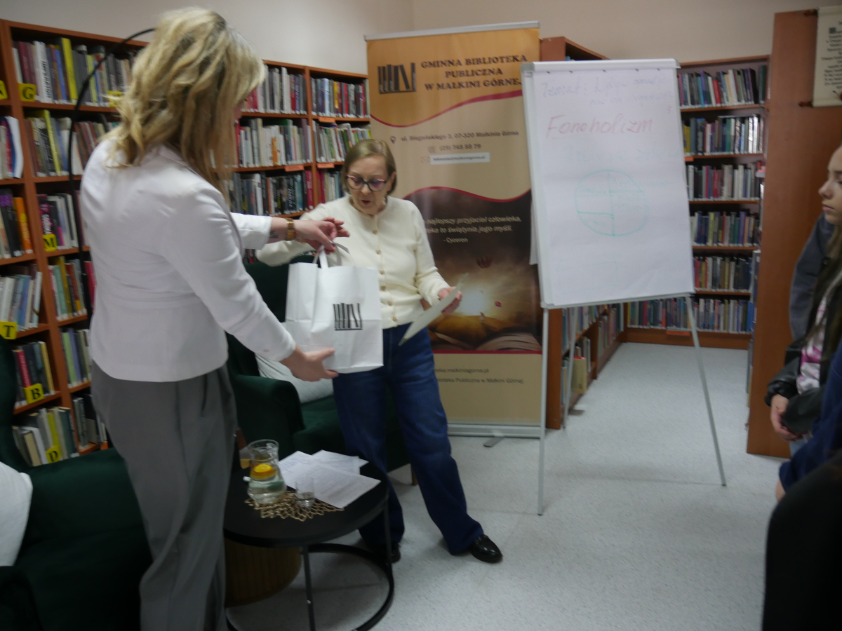 24 kwietnia 2026 r. w Gminnej Bibliotece Publicznej w Małkini Górnej odbyło się spotkanie edukacyjne z udziałem pani Anny Ferenc dietetyk,emerytowanej nauczycielki i specjalistki w zakresie żywienia oraz uczniów klas VI i VII ze Szkoły Podstawowej nr 2 w Małkini Górnej, którego tematem był „Wpływ smartfonów na organizm człowieka”.