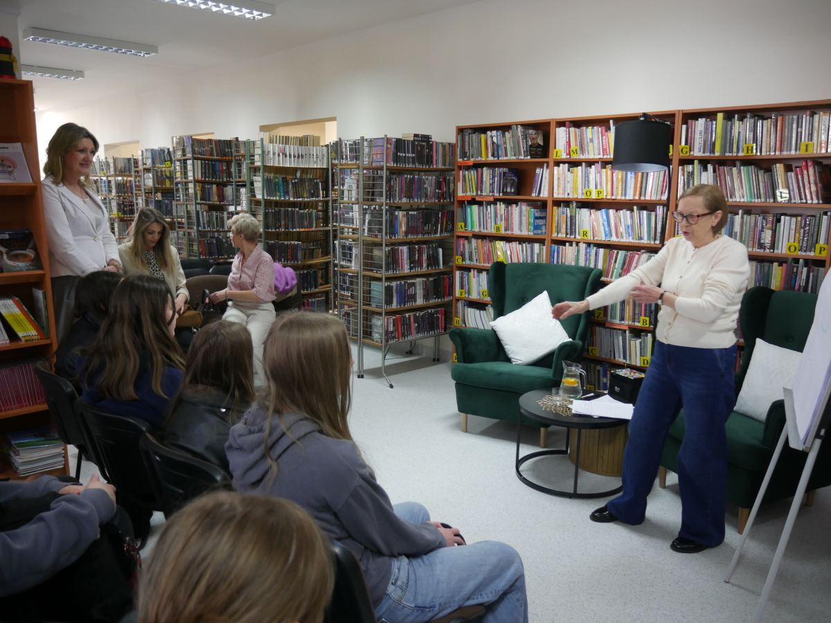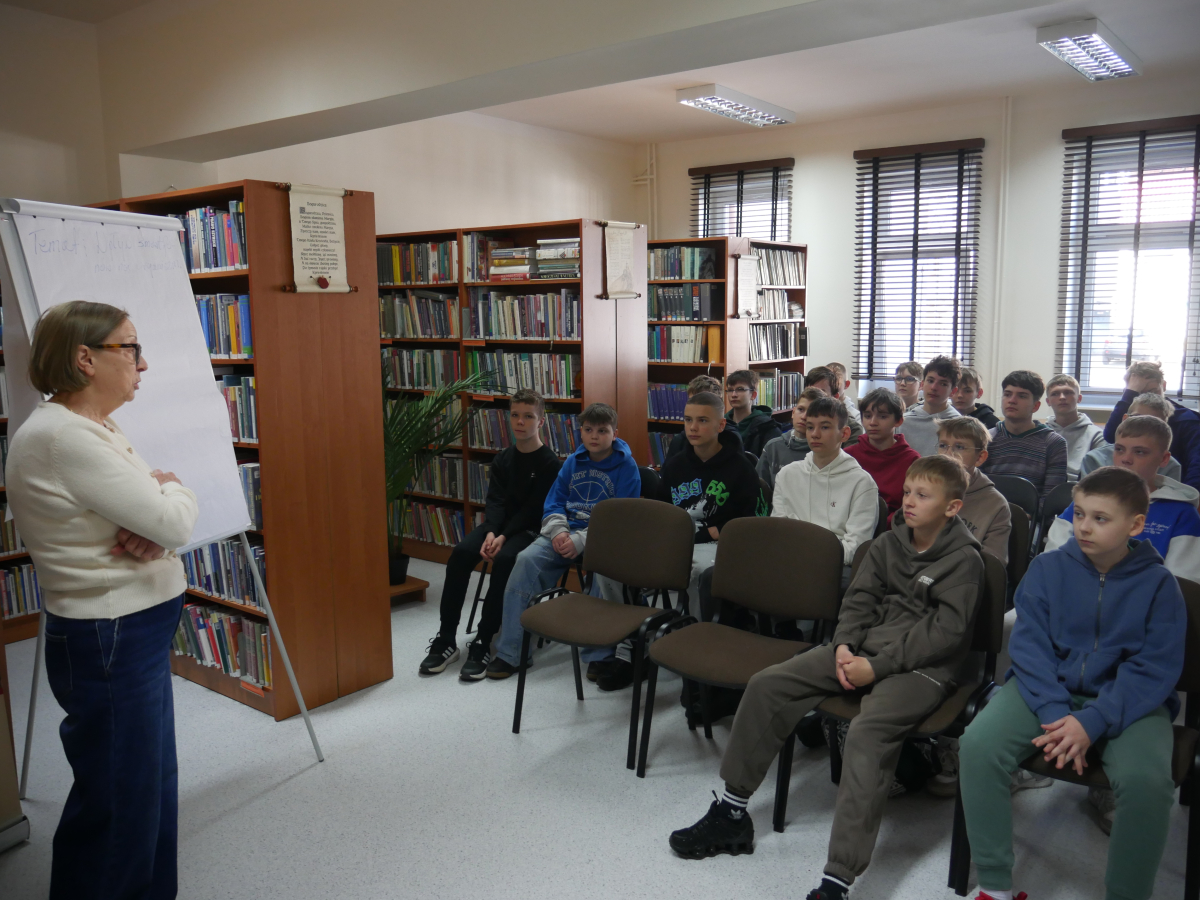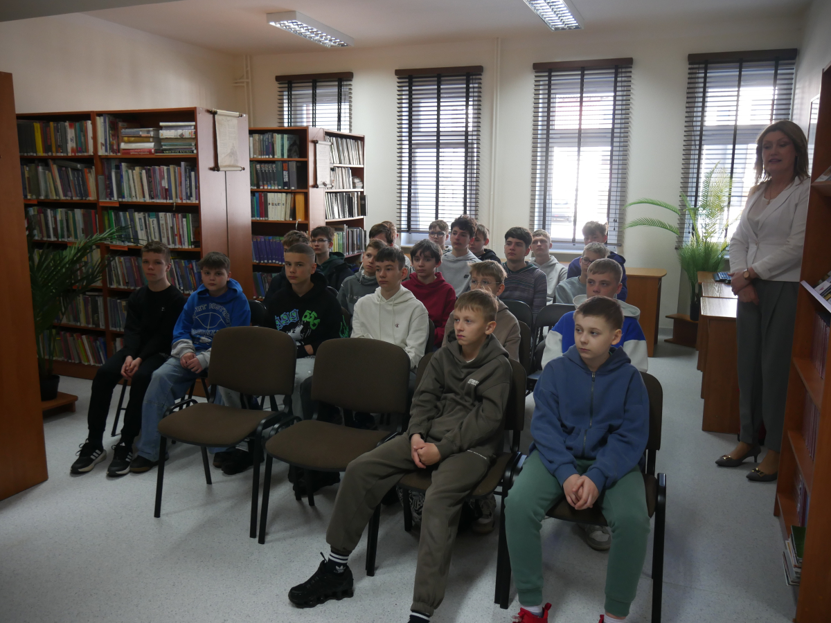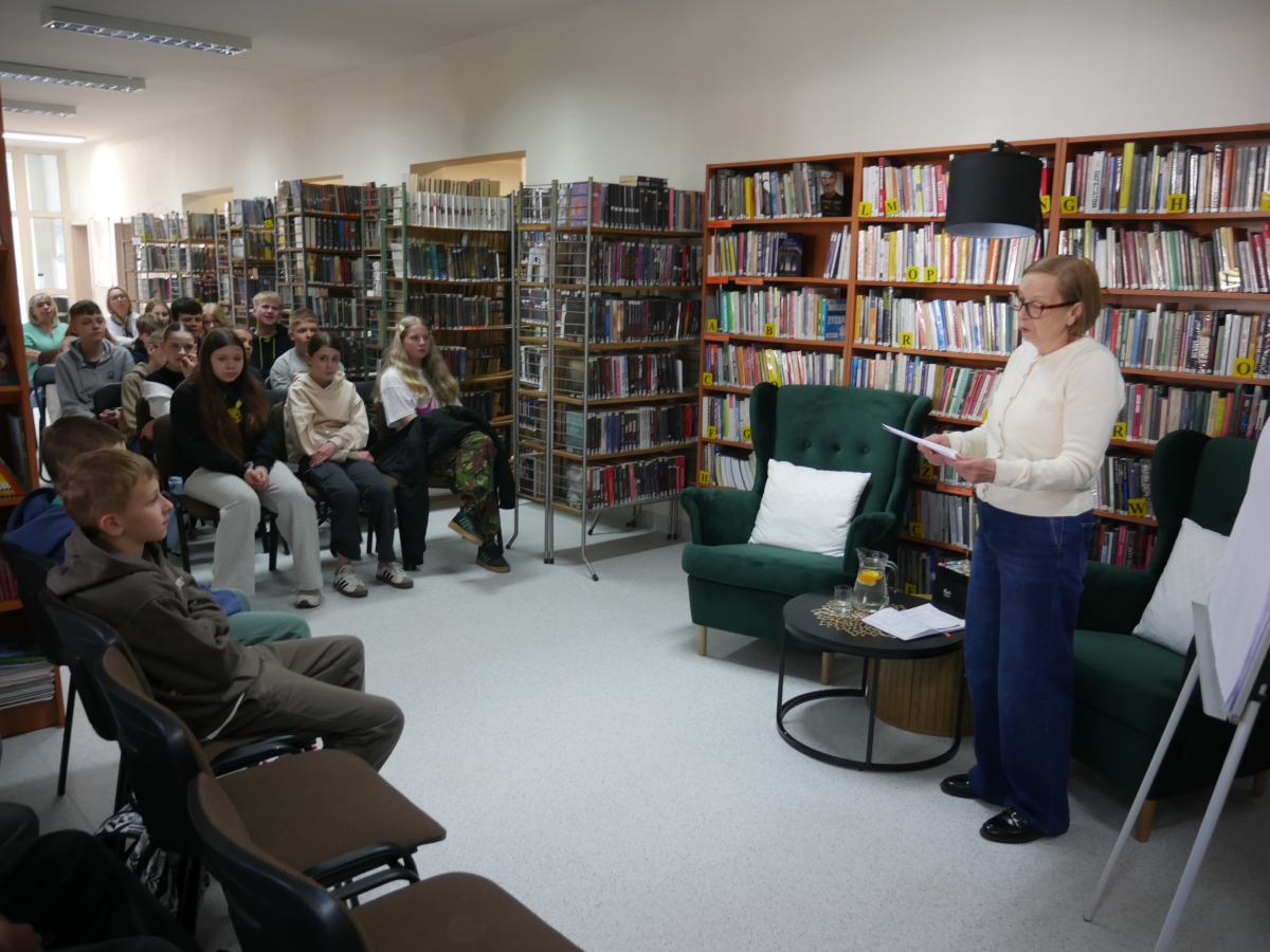 Zwróciła uwagę, że osoby niebędące jeszcze czytelnikami mogą się zapisać i korzystać nie tylko z lektur szkolnych, ale także z poradników, beletrystyki oraz wielu innych wartościowych publikacji. Podkreśliła również, że biblioteka oferuje szeroki wybór książek, dzięki którym uczniowie mogą rozwijać swoje pasje i zainteresowania oraz poszerzać wiedzę, także w zakresie zdrowego stylu życia i dietetyki.