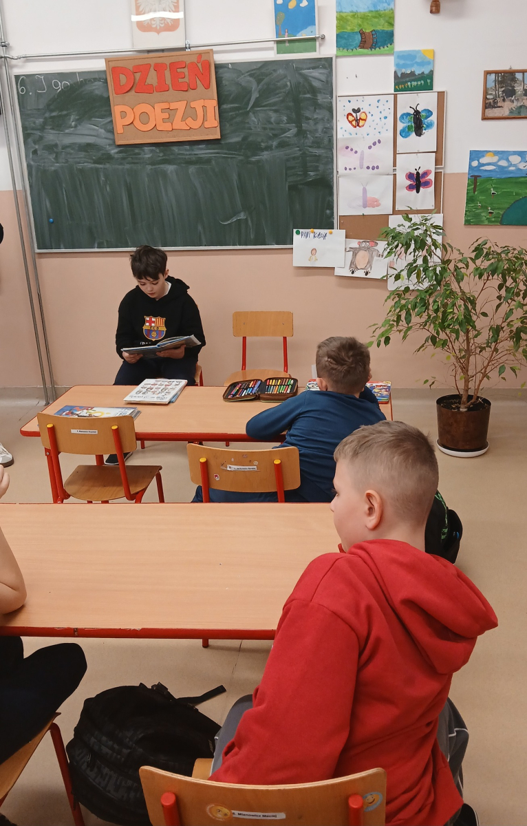 Uczniowie mieli okazję zaprezentować swoje umiejętności i z wielkim zaangażowaniem czytali wybrane wiersze Jana Brzechwy.