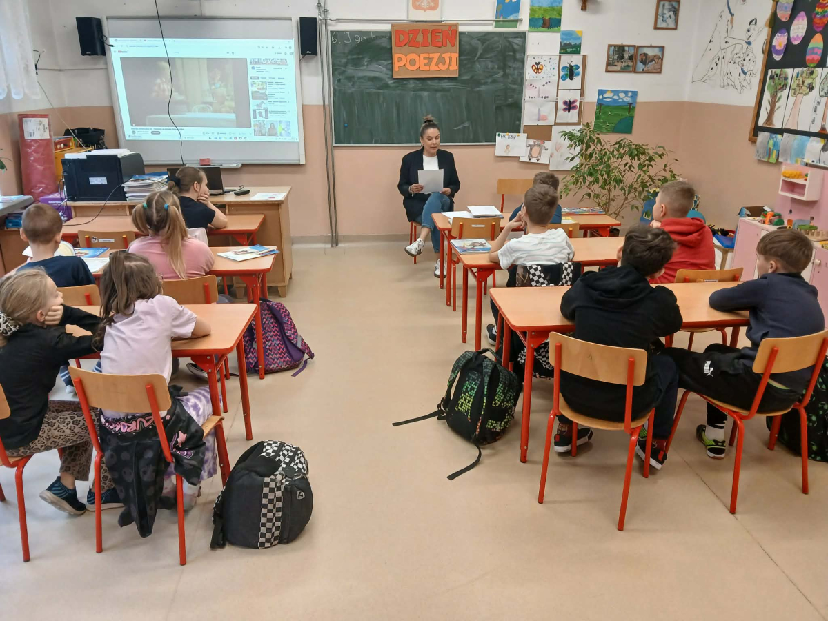 Razem z panią Kasią zabrała dzieci w wyjątkową podróż po świecie wierszy, świętując Światowy Dzień Poezji i przyjście wiosny.