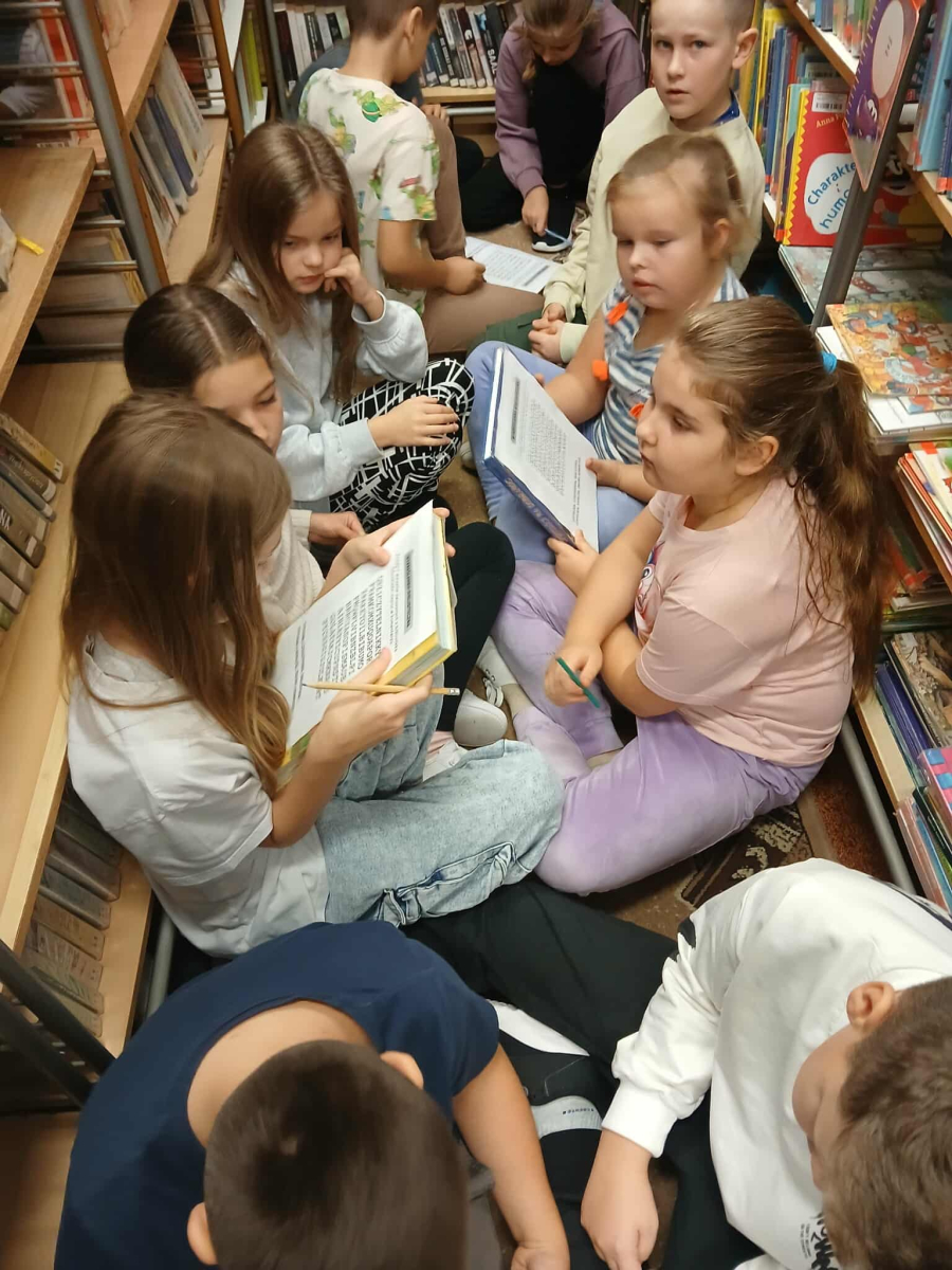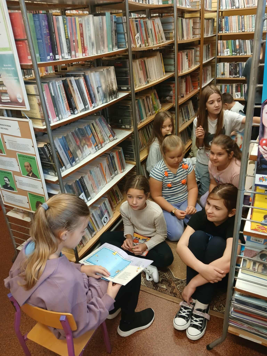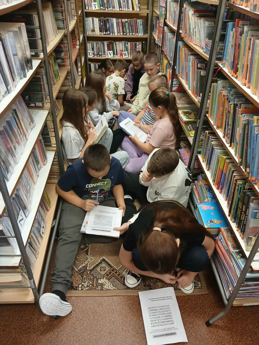 Po części edukacyjnej uczniowie podzielili się na grupy i wspólnie rozwiązywali wykreślankę, która pomogła im utrwalić słownictwo związane z biblioteką oraz zasady korzystania z niej.